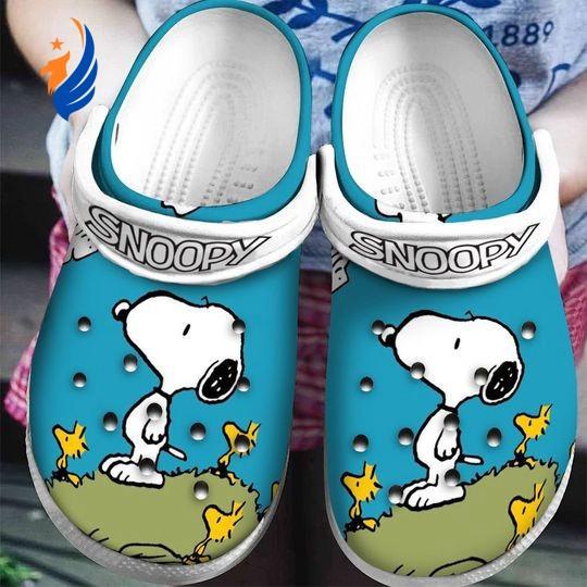 Information About Snoopy Flower & Grass Pattern Crocs-Slippers-Slippers Classic Clogs Shoes In Blue & White