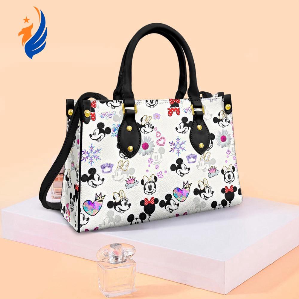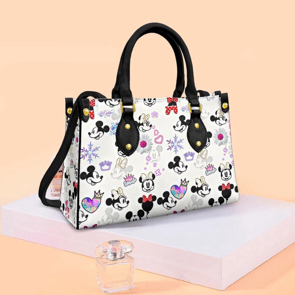 Mickey And Minnie Mouse Disney Happy Valentine’s Day Mickey Fashion Lady Handbag will add a touch of whimsical charm to your ensemble. Made from high-quality materials, this handbag features an adorable Mickey and Minnie Mouse design, perfect for Disney fans. With its spacious compartments and sturdy construction, it offers both practicality and style. The adjustable strap allows for comfortable wear, while the zip closure ensures the safety of your belongings. Ideal for daily use or special occasions, this handbag is a must-have accessory. Celebrate love and express your Disney adoration with this delightful Mickey Fashion Lady Handbag.