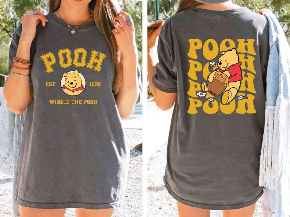 Introducing the Comfort Colors® Disney Pooh Est. 1926 Shirt, a must-have for all Winnie the Pooh enthusiasts. This timeless shirt showcases your love for the iconic bear and his friends. Made from premium quality fabric, it offers utmost comfort and durability. The vibrant colors and intricate design capture the whimsical essence of Pooh and his adventures. With its classic fit and relaxed style, this Disney Pooh Shirt is perfect for any occasion. Whether you're heading to the Hundred Acre Wood or simply lounging at home, this shirt will keep you cozy and stylish. Embrace the nostalgia and relive your favorite childhood memories with this Disney Pooh Bear Shirt. Unlock the magic of comfort and style with this delightful addition to your wardrobe. Order now and experience the joy of wearing a piece of Disney history.