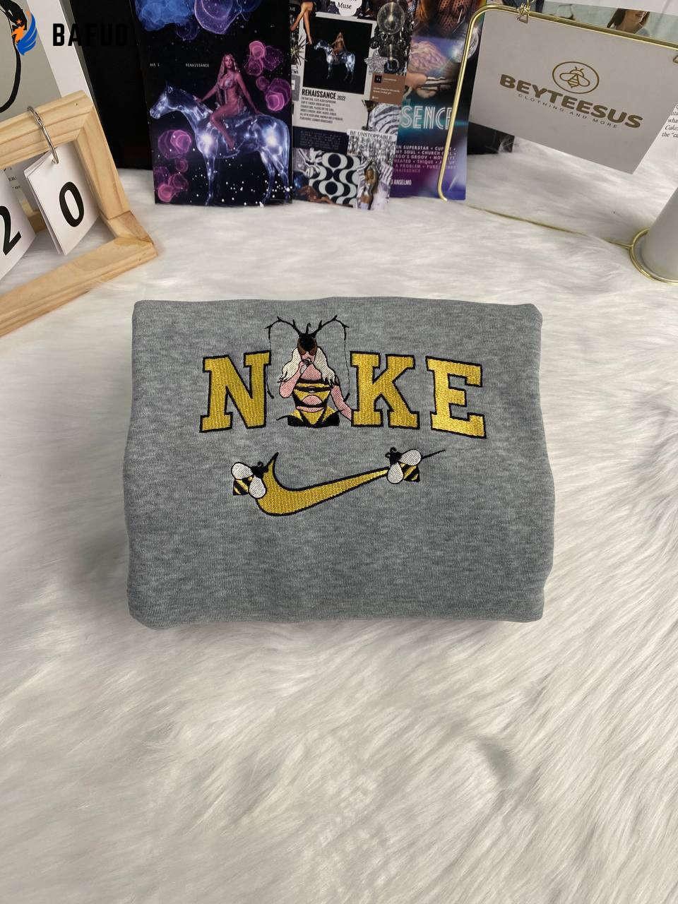 Introducing the Nike Beyonce Merch Embroidered Crewneck TShirt/Sweatshirt, a must-have for fashion-forward men and women. Made from premium quality materials, this shirt offers unmatched comfort and durability. The intricate embroidery adds a touch of elegance, making it a statement piece. Whether you're a fan of Beyonce or simply appreciate high-quality fashion, this shirt is for you. Stand out from the crowd with this exclusive Nike collaboration. Perfect for casual outings or lounging at home, this versatile shirt is a wardrobe essential. Get yours today and elevate your style game!
