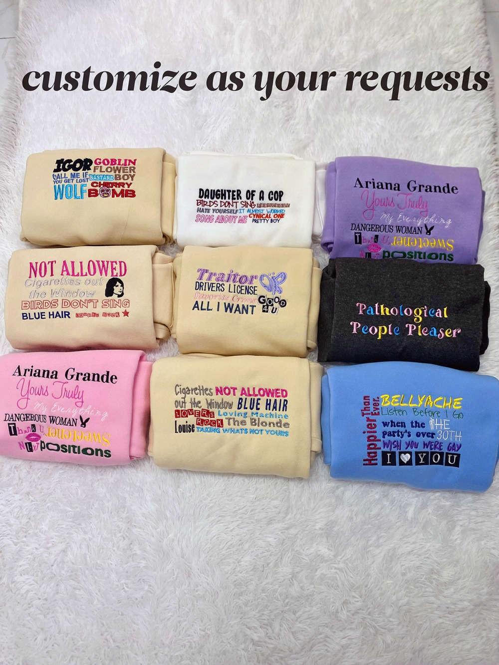Custom Embroidered Crewneck T-Shirt, Sweatshirt for Men Women Songs (Albums) Shirt, Gift for Men Women