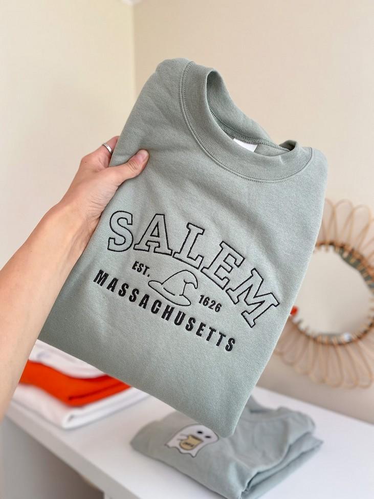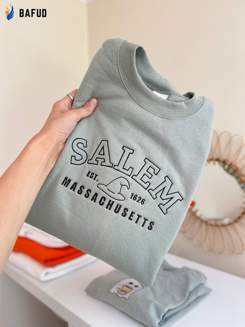 The Salem Est 1626 Embroidered Crewneck T-Shirt, Sweatshirt for Men Women Shirt showcases the rich history of Salem. With its meticulously crafted embroidery and comfortable fit, this shirt is perfect for both men and women. Made from high-quality materials, it offers durability and comfort. The intricate embroidery showcases the founding year of Salem, adding a touch of heritage to your wardrobe. Whether you're a history enthusiast or simply appreciate fine craftsmanship, this shirt is a must-have. Stand out from the crowd and show your love for Salem with this stylish and meaningful piece. Get yours today and embrace the timeless charm of Salem.