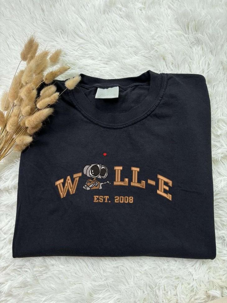 Featuring a stunning embroidery of Wall-E and Eve on the front, this shirt is a true homage to the movie. The intricate details and vibrant colors make this shirt truly stand out. Whether you're wearing it to a movie night, a casual outing, or just lounging at home, this shirt is guaranteed to turn heads and spark conversations.