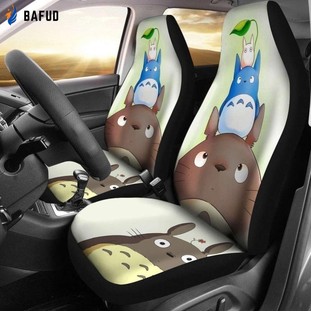 Each set includes two front seat covers, crafted with premium quality materials to ensure durability and comfort during long drives. The vibrant and detailed Totoro with leaf design adds a touch of magic to your car interior, turning heads wherever you go.