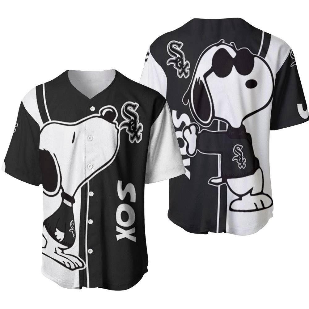 Introducing our Chicago White Sox Snoopy Lover Printed Baseball Jersey - the perfect gift for both women and men who are fans of the team! Made with high-quality materials, this jersey is not only stylish but also comfortable to wear. The unique Snoopy Lover design adds a touch of fun and personality to your game day outfit. Show your support for the Chicago White Sox while channeling your love for Snoopy. With its excellent craftsmanship and attention to detail, this jersey is a must-have for any true fan. Get yours today and stand out from the crowd with this eye-catching baseball jersey!
