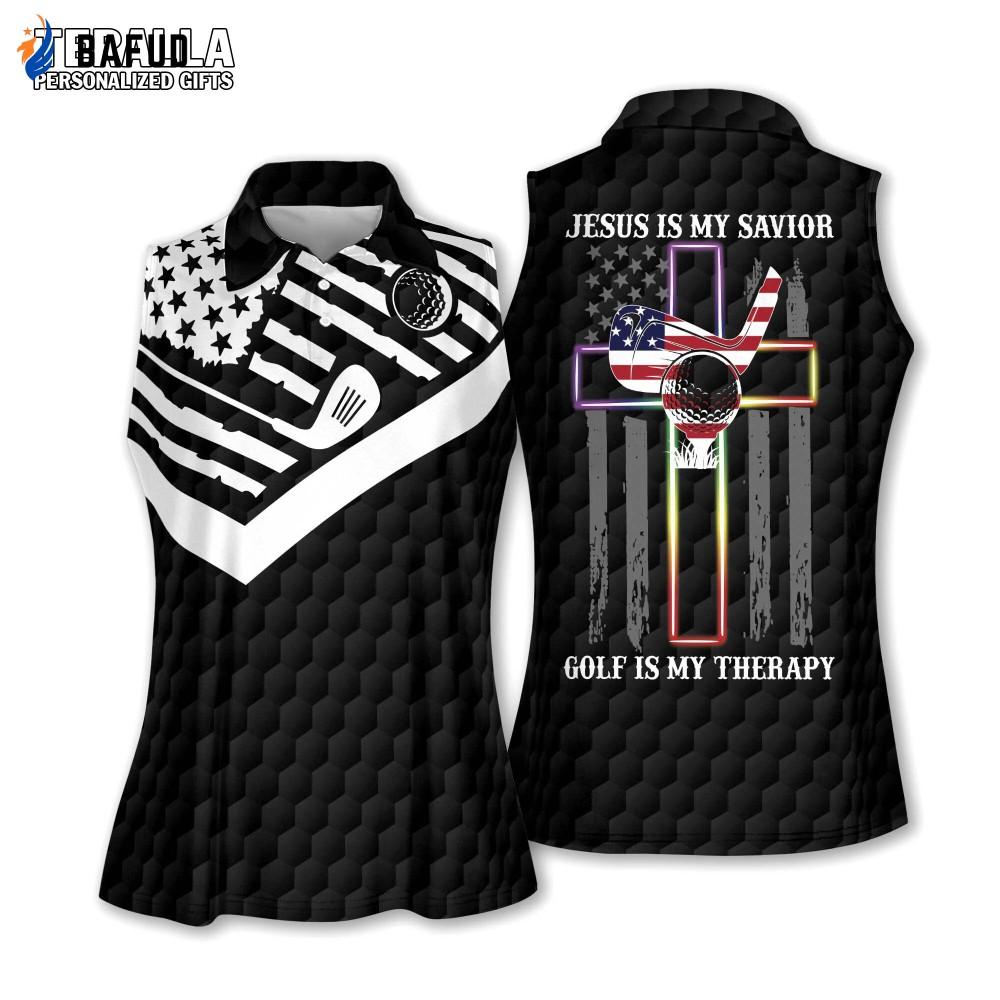 When you wear our Jesus Is My Savior Golf Is My Therapy Women Short Sleeve Polo Shirt Sleeveless Polo Shirt, you not only express your love for Jesus and golf, but you also become part of a community of like-minded individuals who share the same passion. It's a way to connect, inspire, and uplift others, all while looking stylish and comfortable.