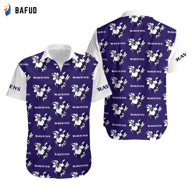Baltimore Ravens Mickey and Flowers Hawaii Shirt - Perfect for Summer Fun!