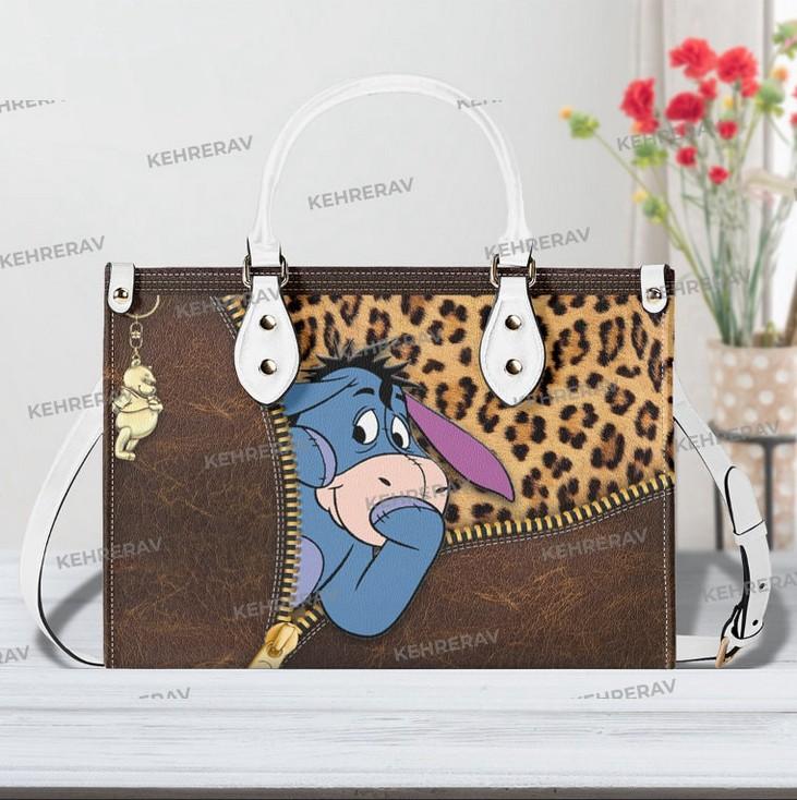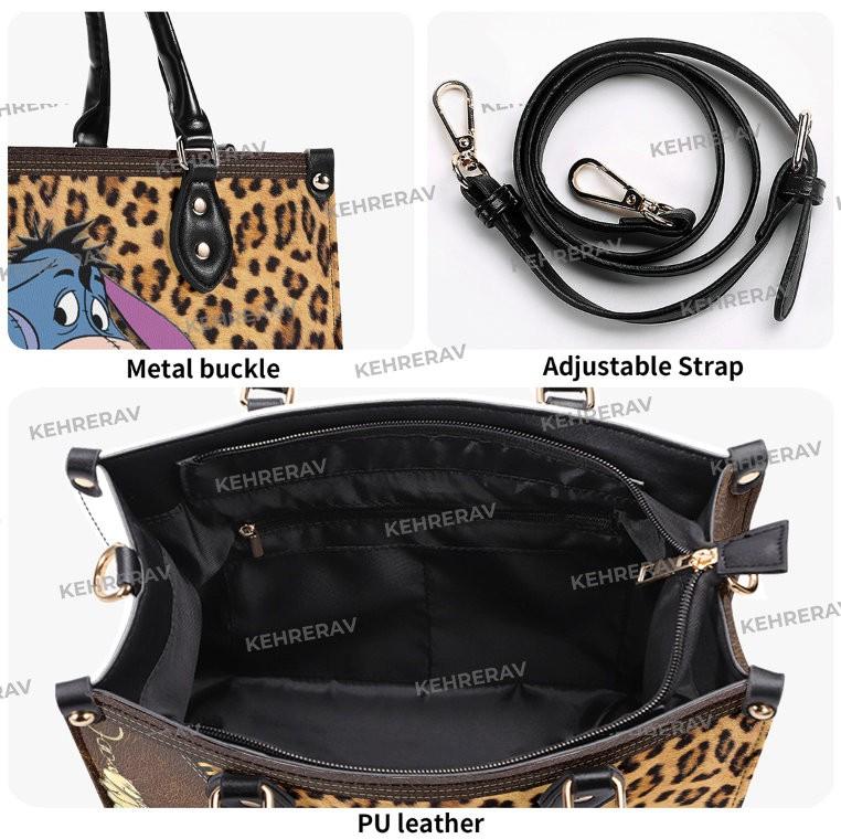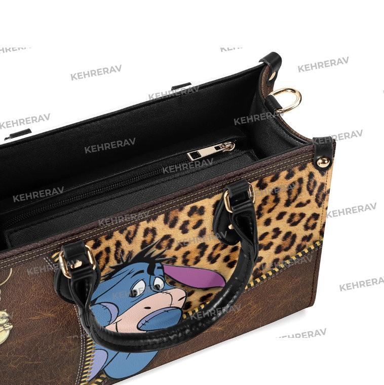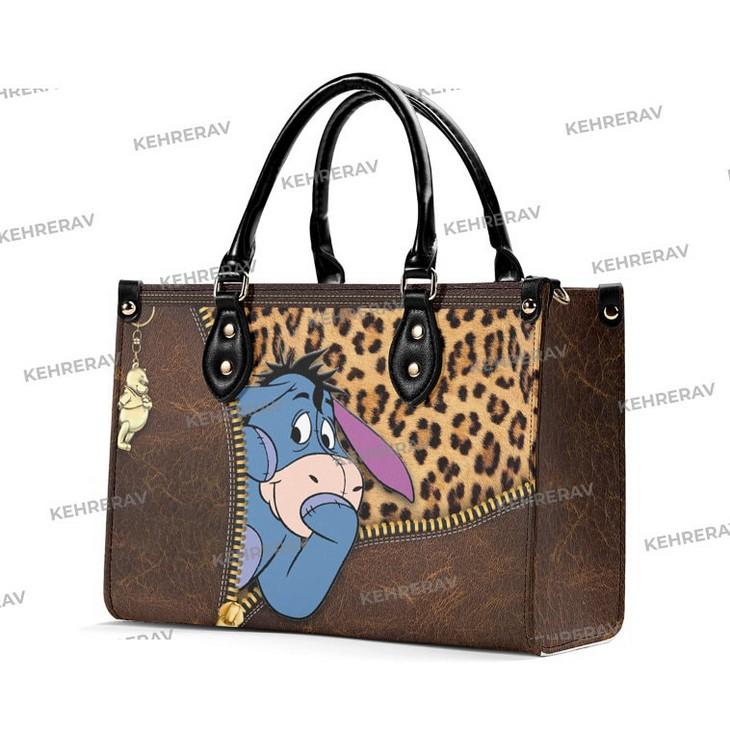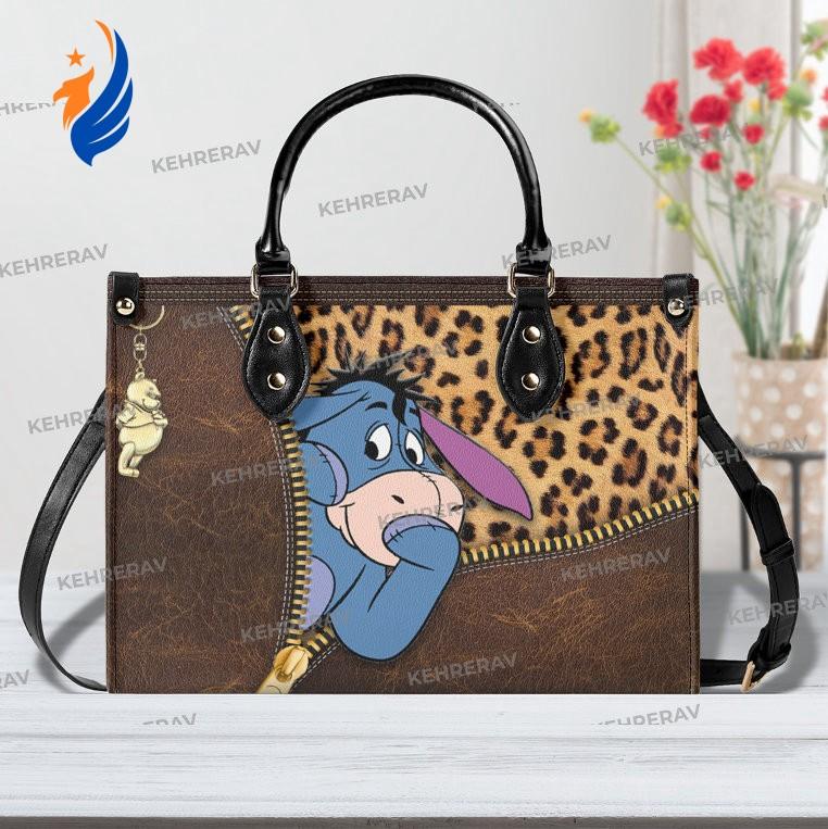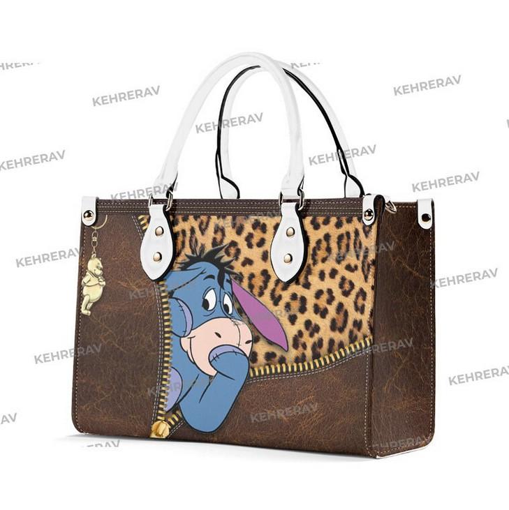 Introducing our exquisite Leopard Winnie The Pooh Eeyore Leather Handbag! This stunning handcrafted bag is a must-have for Eeyore lovers, combining style and functionality. Made from high-quality leather, it offers durability and long-lasting use. The spacious interior is perfect for organizing your essentials, while the custom design adds a unique touch. With its comfortable handles and adjustable strap, it can be carried in multiple ways. This handbag is not only a fashion statement but also a practical accessory for any occasion. Own this one-of-a-kind Eeyore lover's handbag today and experience the value it brings to your wardrobe.