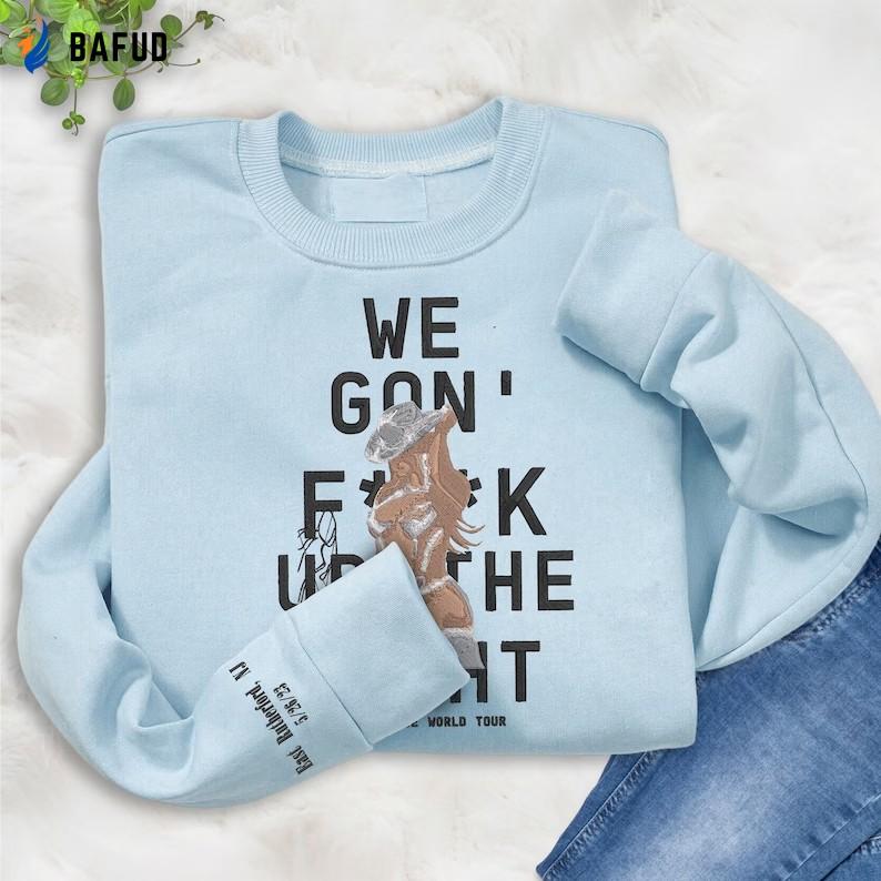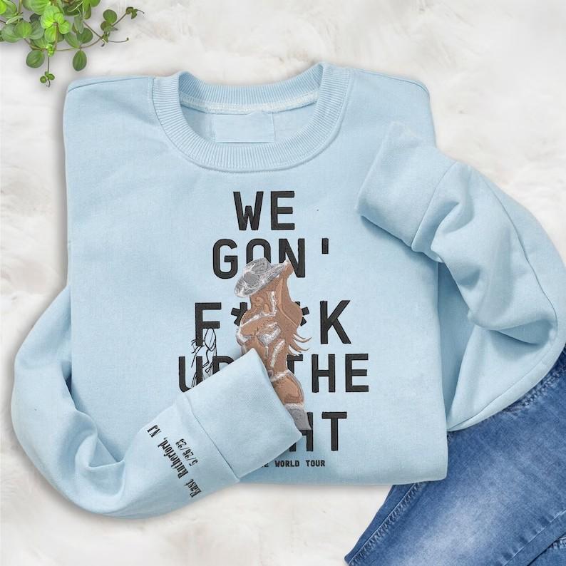 Introducing the Beyonce' Embroidered Crewneck T-Shirt, a stylish and comfortable sweatshirt for men and women. Made with high-quality materials, this shirt is perfect for any Beyonce' fan. The unique embroidery adds a touch of sophistication to your wardrobe, making it a great gift for both men and women. Whether you're attending a concert or simply want to show off your love for Queen Bey, this shirt is a must-have. With its versatile design, you can easily dress it up or down for any occasion. Stand out from the crowd and embrace your inner Beyonce' with this trendy and fashionable shirt. Get yours today and experience the value of being a true fan!