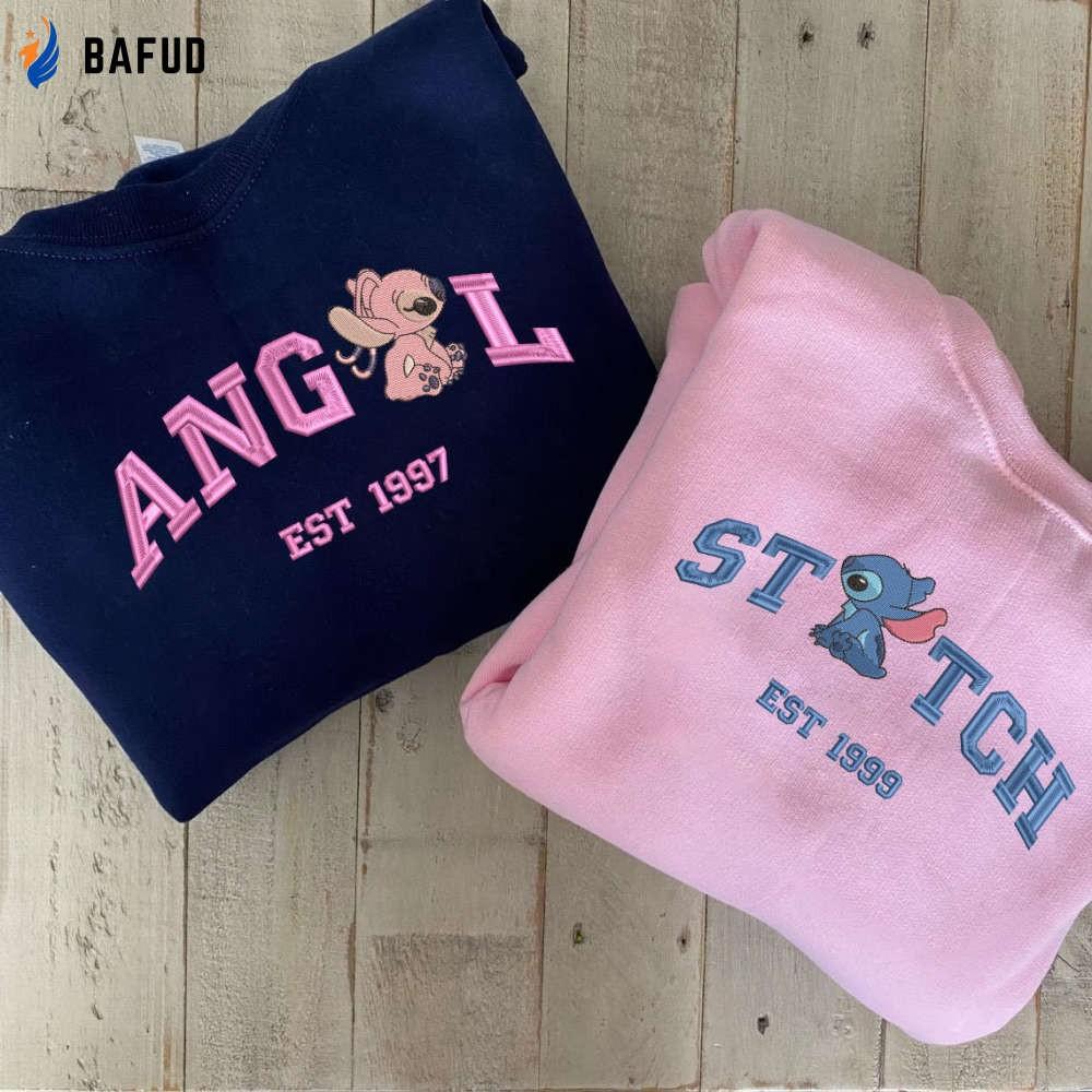Stitch and Angel Embroidered Sweatshirt: Perfect Valentine Gift for Couples - Couple Cartoon Shirts for a Memorable Valentine s Day BUY IT HERE