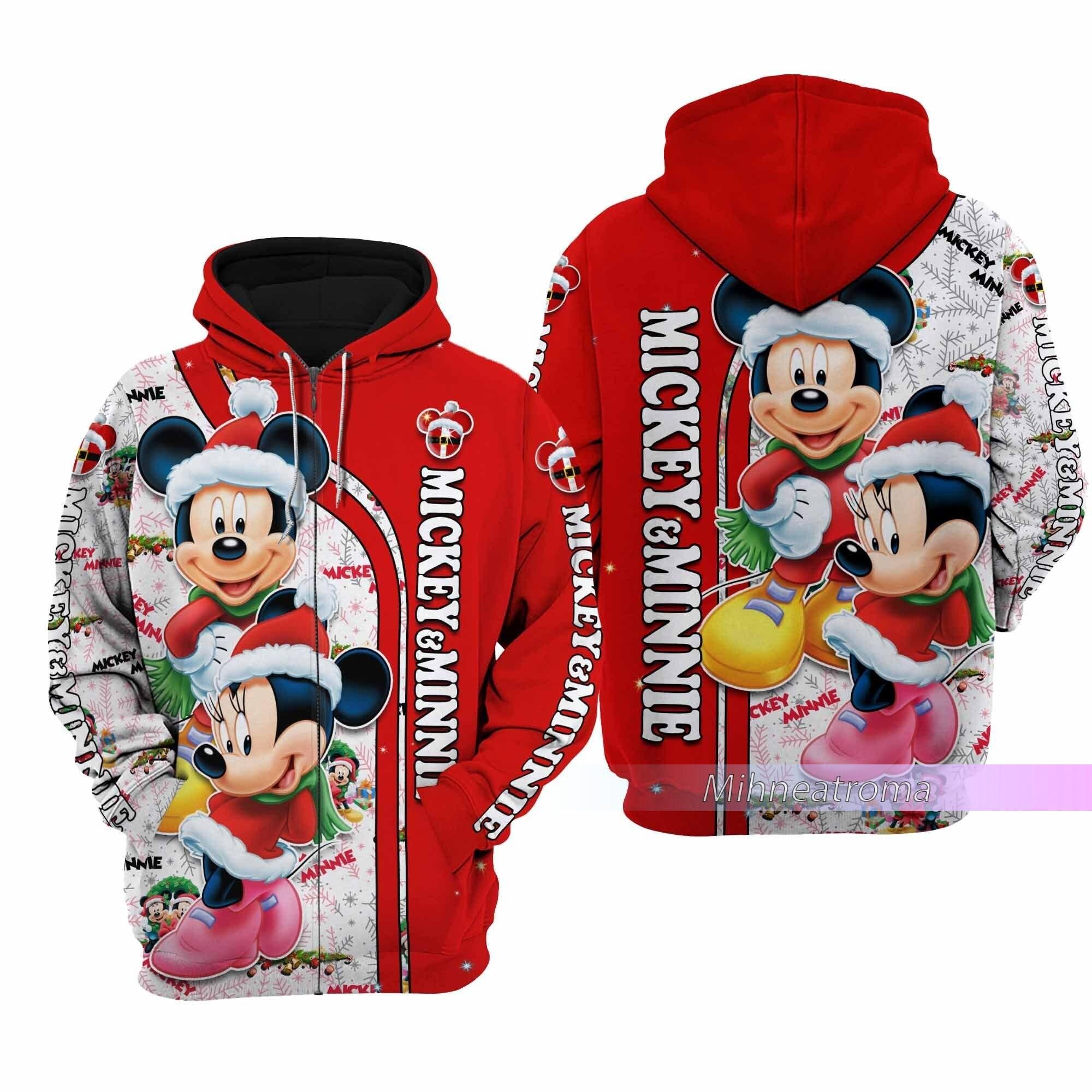 cartoon design of Mickey and Minnie, perfect for Disney fans. The zip hoodie offers added convenience, while the Mickey shirt is