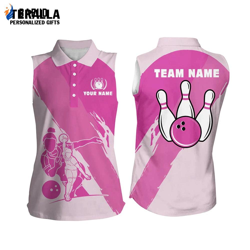 Introducing our Personalized Pink Sleeveless Polo 3D Bowling Shirt for Women, a perfect blend of style and functionality. Made with the utmost care and attention to detail, this shirt is designed to enhance your bowling experience while making a bold fashion statement.