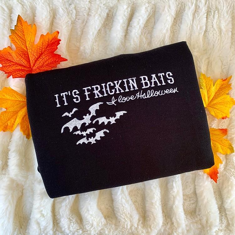 The Frickin Bats Halloween Embroidered Crewneck T-Shirt is the perfect spooky addition to your wardrobe. Made with highquality materials, this shirt features an intricately embroidered design of bats, adding a touch of Halloween spirit to any outfit. Available for both men and women, this shirt is versatile and can be worn by anyone. Whether you're attending a Halloween party or just want to show off your love for the holiday, this shirt is a must-have. With its comfortable fit and stylish design, it's not only a great gift for yourself but also for your loved ones. Stand out from the crowd and embrace the Halloween season with the Frickin Bats Halloween Embroidered Crewneck T-Shirt.