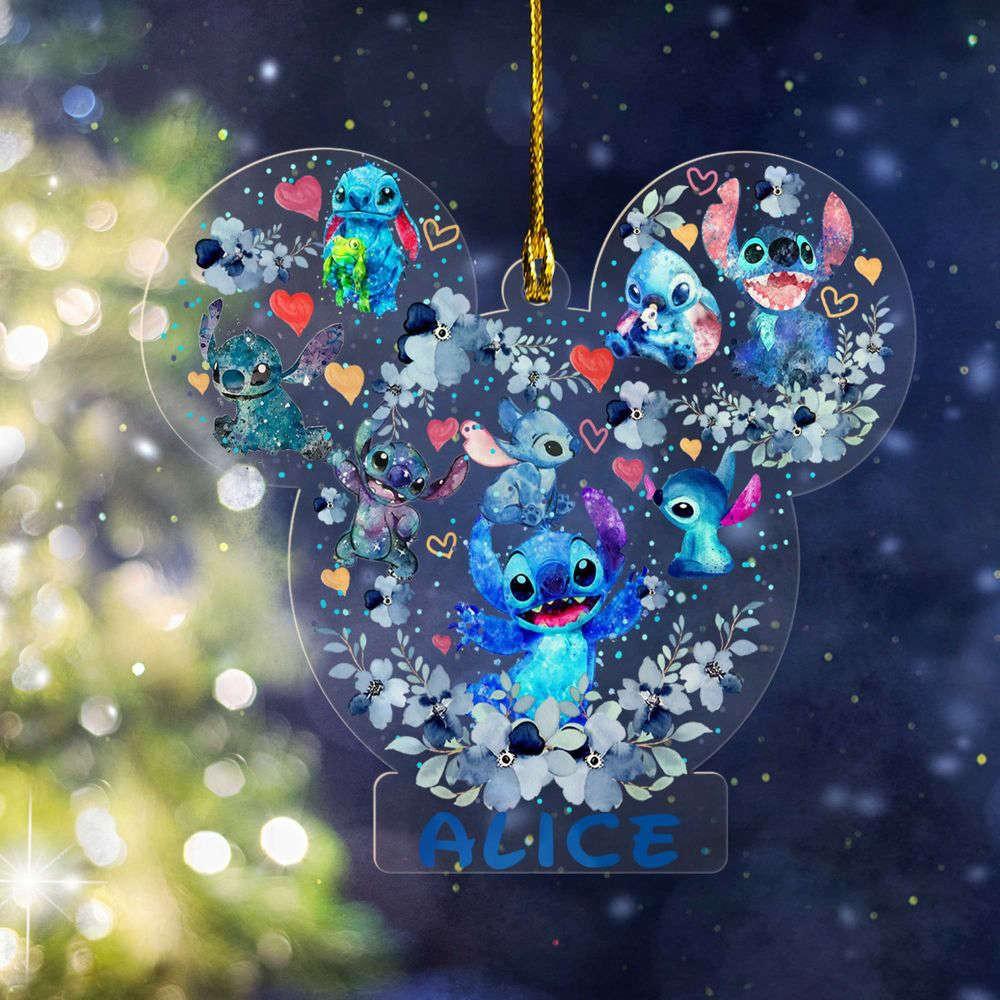 Introducing our Personalized Mickey Mouse Stitch Ornament, the perfect gift for any Disney or Stitch fan! This adorable ornament features a hand-painted Mickey Mouse dressed as Stitch, complete with his signature blue fur and mischievous smile. Each ornament is meticulously crafted with attention to detail, making it a truly unique and special keepsake. Personalize it with a name or special message to add an extra touch of personalization. Hang it on your Christmas tree, display it on a shelf, or use it as a decorative accent all year round. This Stitch Ornament Gift is sure to bring joy and nostalgia to any Disney lover, and it's a delightful addition to any holiday decor. Order now and make someone's day magical with this charming Mickey Mouse Stitch Ornament!