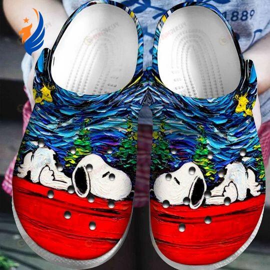 Information About Snoopy Leaf Pattern Crocs-Slippers-Slippers Classic Clogs Shoes In Red & Blue
