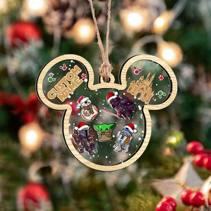 Introducing our Personalized Star Wars Ornament, the perfect addition to your Christmas decor! This stunning ornament features iconic characters such as Darth Vader, Baby Yoda, Boba Fett, R2-D2, and Mickey Ears, creating a galactic masterpiece. Crafted with exquisite attention to detail, this ornament is personalized with your chosen name, making it a truly unique and special keepsake. Hang it on your Christmas tree or display it on a mantel to showcase your love for the Star Wars universe. Made from high-quality materials, this ornament is durable and long-lasting, ensuring years of enjoyment. Celebrate the magic of Star Wars this holiday season and make cherished memories with our Personalized Star Wars Ornament. Order now and give the ultimate gift to any Star Wars fan!