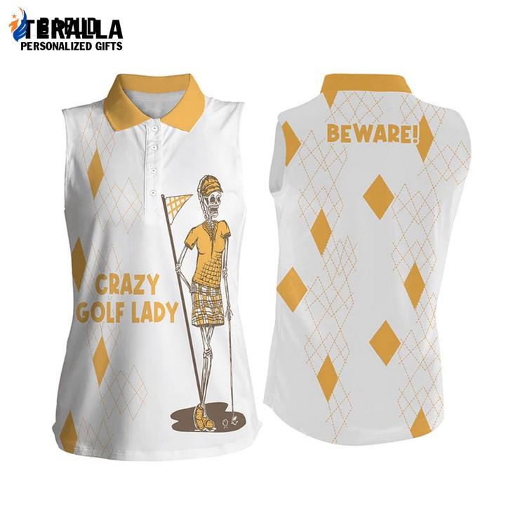 Invest in this Funny Womens Golf Skull Crazy Golf Lady Beware Sleeveless Polo Shirt For Women and experience the perfect combination of style, comfort, and functionality. Elevate your golf wardrobe and showcase your unique personality with this must-have piece. Get ready to turn heads and have a blast on the golf course!