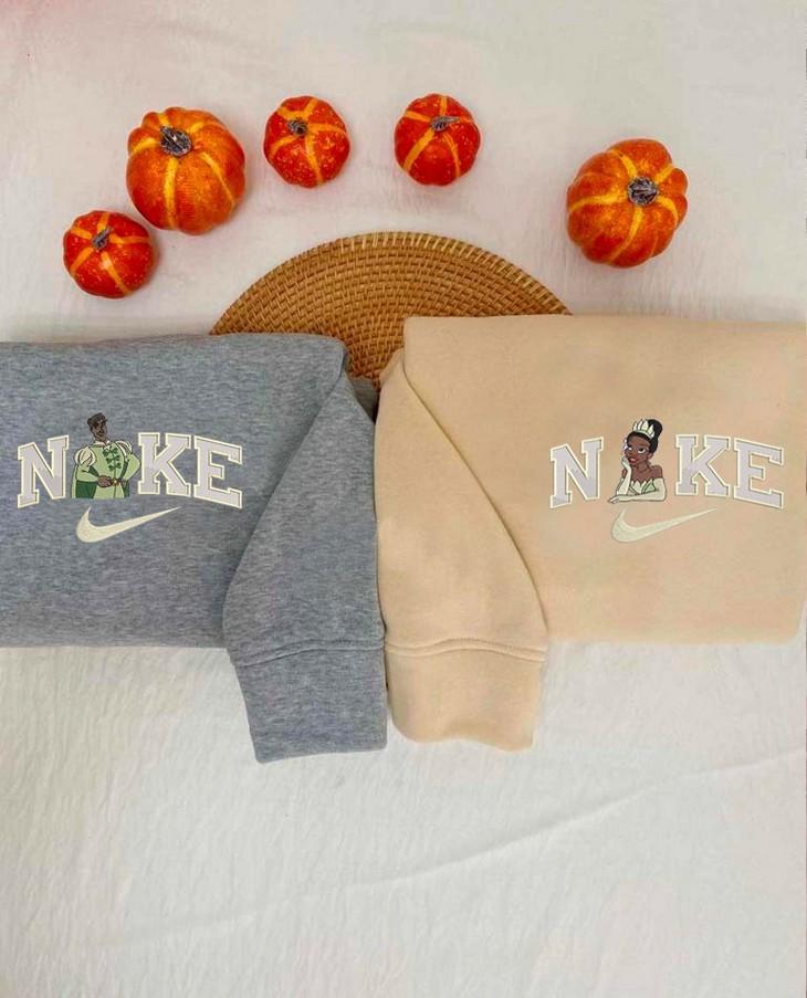 Introducing our enchanting Princess Tiana and Prince Naveen Embroidered Crewneck T-Shirt and Sweatshirt collection for men and women. Made with premium quality materials, these shirts are adorned with intricate embroidery showcasing the beloved characters from Disney's "The Princess and the Frog." The crewneck design ensures a comfortable fit, perfect for everyday wear or special occasions. Show off your love for these iconic characters while staying stylish and cozy. With our Tiana and Naveen shirts, you can effortlessly embrace your inner royalty and relive the magic of this timeless fairy tale. Experience the joy of owning these exquisite pieces that bring the Disney magic to life. Embrace your favorite characters and let their story inspire your own. Shop now and add a touch of Disney enchantment to your wardrobe!