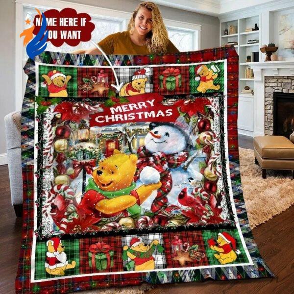 Disney Winnie The Pooh And Snowman Personalized Christmas Gift, Disney Winnie The Pooh Quilt Blanket 1735