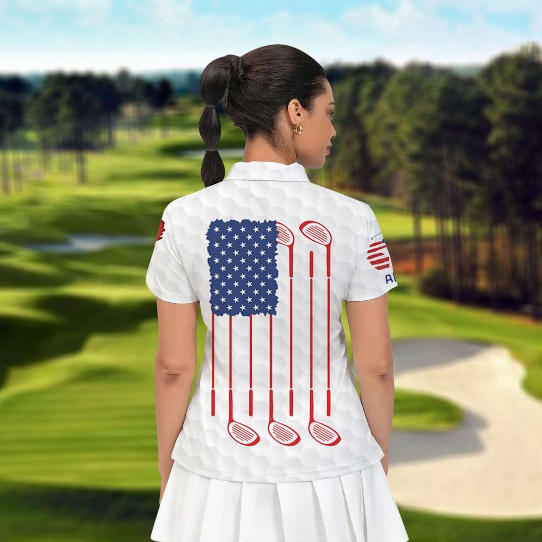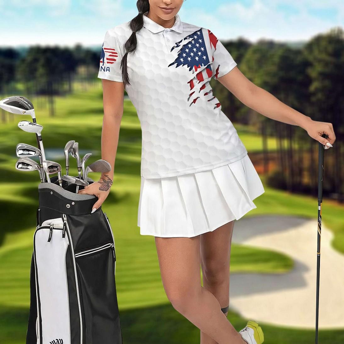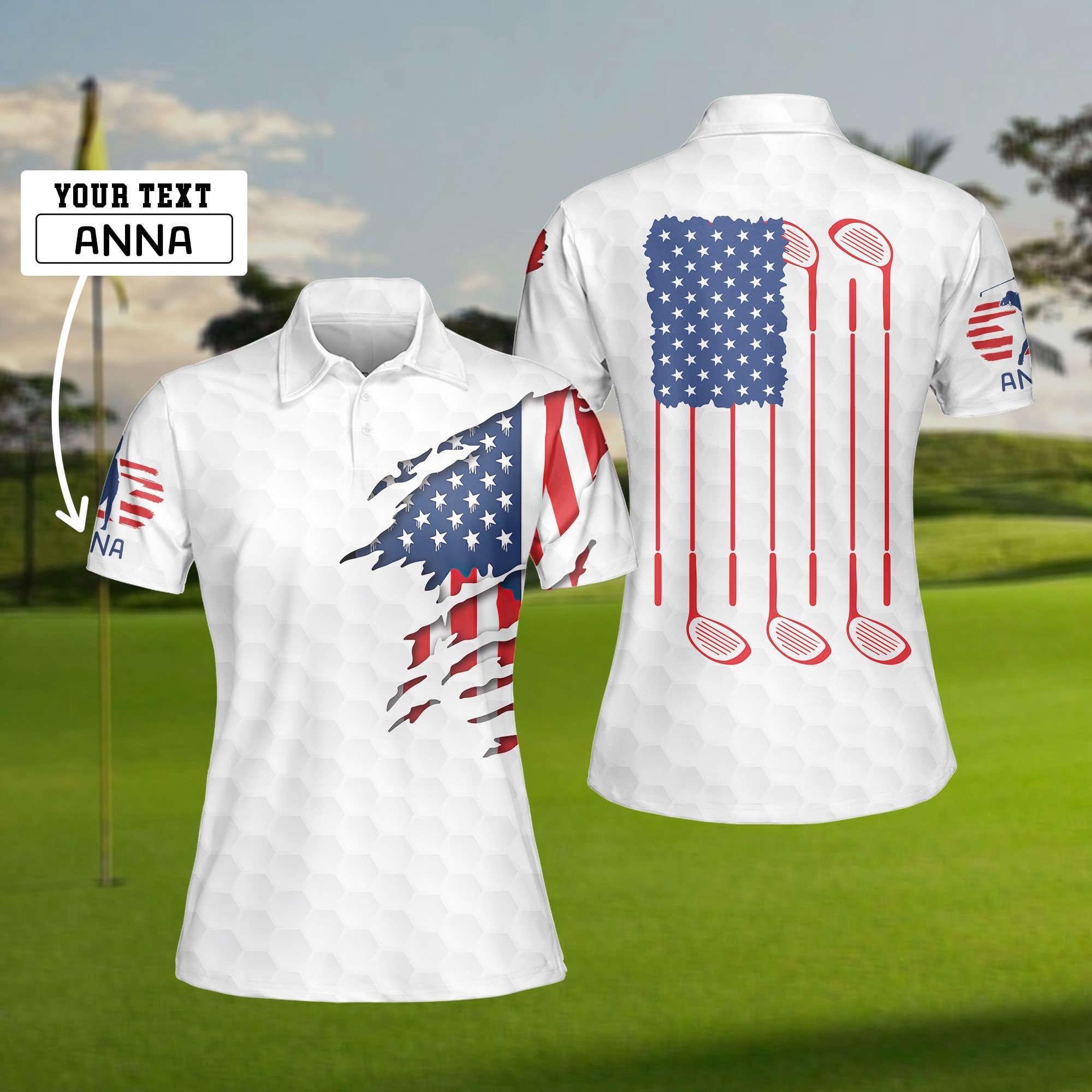 American Woman Golf Polo Shirt, Golfer Shirt, Golf Shirt Short Sleeve Women Polo Shirt, 4th July Patriotic Polo Shirt
