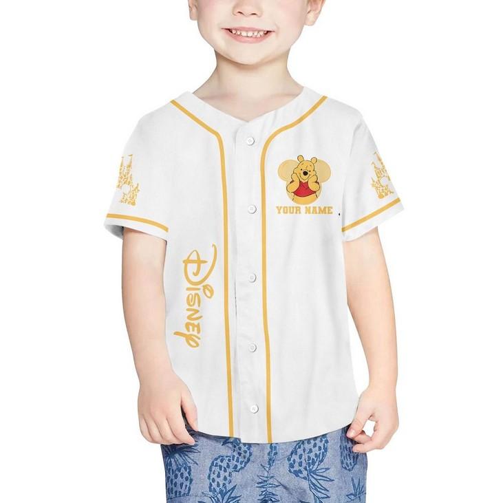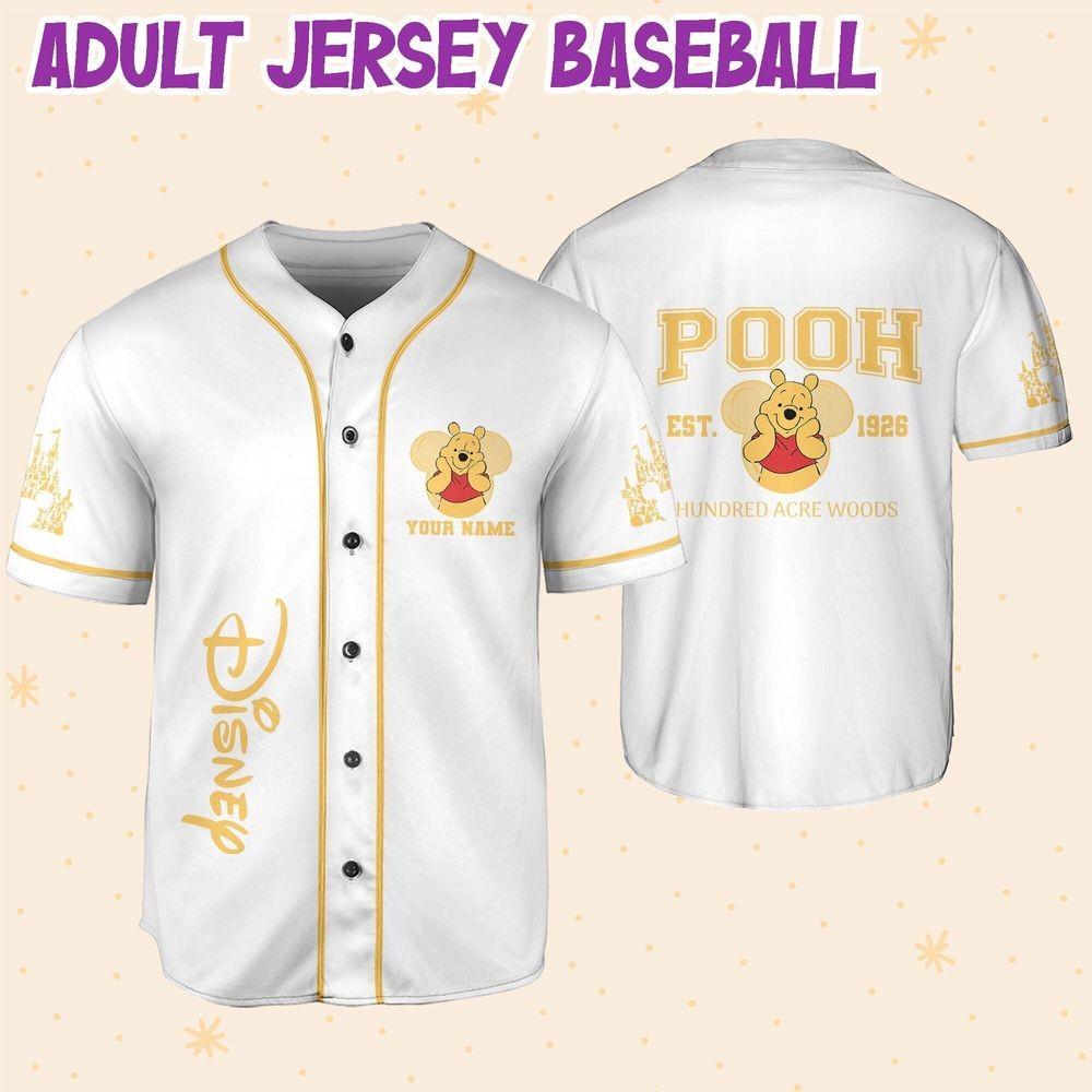 Introducing our Personalized Winnie The Pooh Baseball Jersey, a delightful addition to any fan's collection. Made from high-quality materials, this jersey showcases a vibrant design featuring everyone's favorite bear, Winnie The Pooh. With the option to personalize it with your name or favorite number, this jersey becomes a one-of-a-kind keepsake. Not only does it offer supreme comfort and durability, but it also allows you to display your love for this beloved character in style. Whether you're wearing it to a game or simply out and about, this jersey is sure to turn heads and spark conversations. Get ready to embrace the nostalgia and create cherished memories with our Personalized Winnie The Pooh Baseball Jersey. It's time to show off your passion and make a statement with this unique piece!