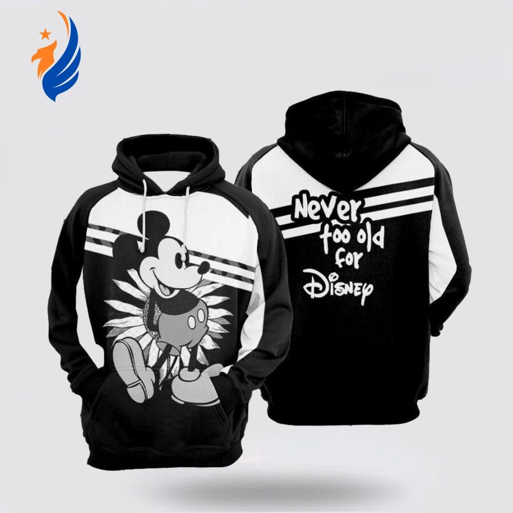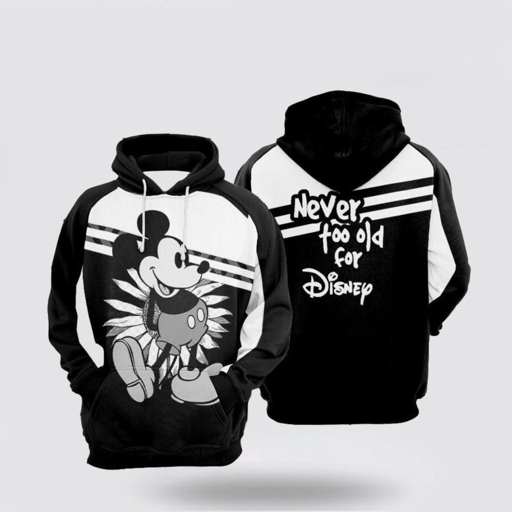 Mouse Black Never Too Old For Disney Over Print 3D Hoodie