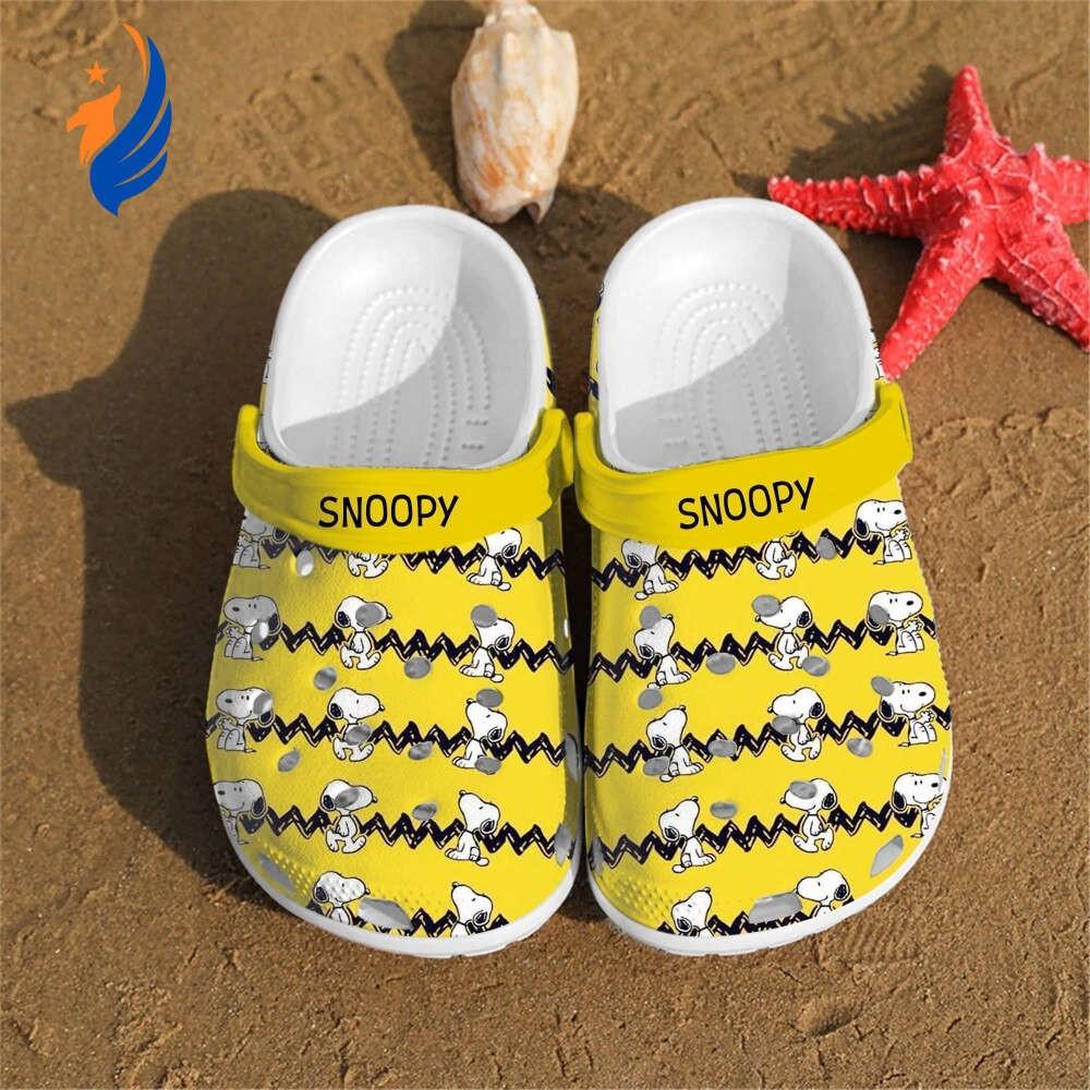 Information About Snoopy Charlie Brown Pattern Crocs-Slippers-Slippers Classic Clogs Shoes In Yellow - AOP Clog