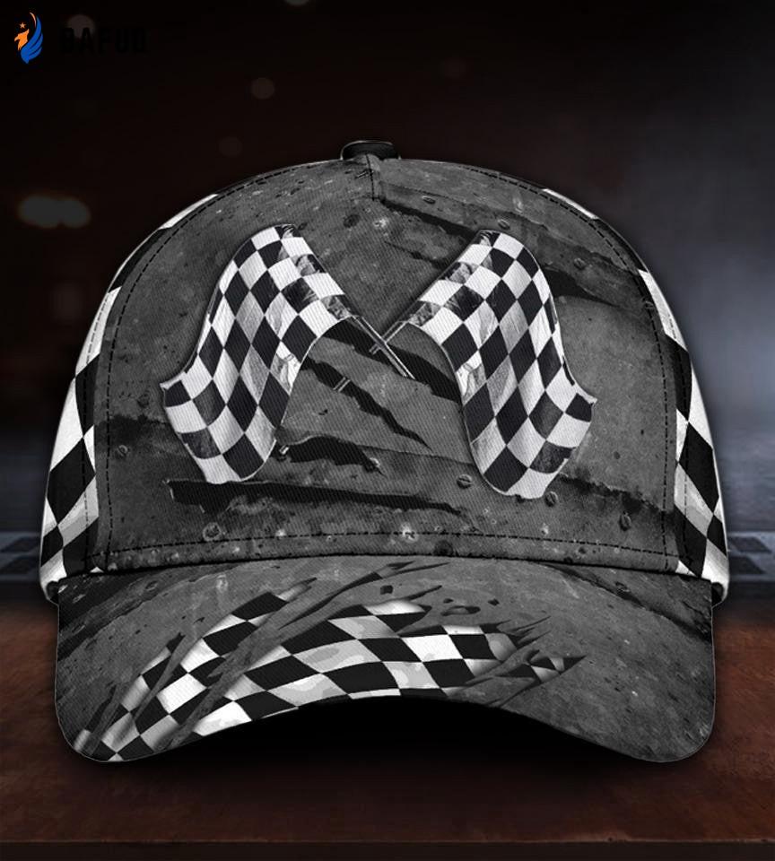 Featuring a bold and captivating all-over print design, this cap showcases the iconic racing flag pattern, creating a visual spectacle that is sure to turn heads. Made from premium quality materials, our cap ensures durability and long-lasting wear, allowing you to show off your passion for racing for years to come.