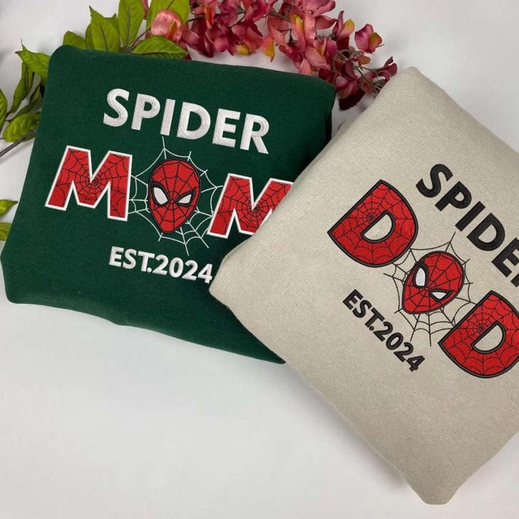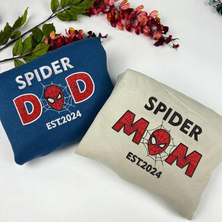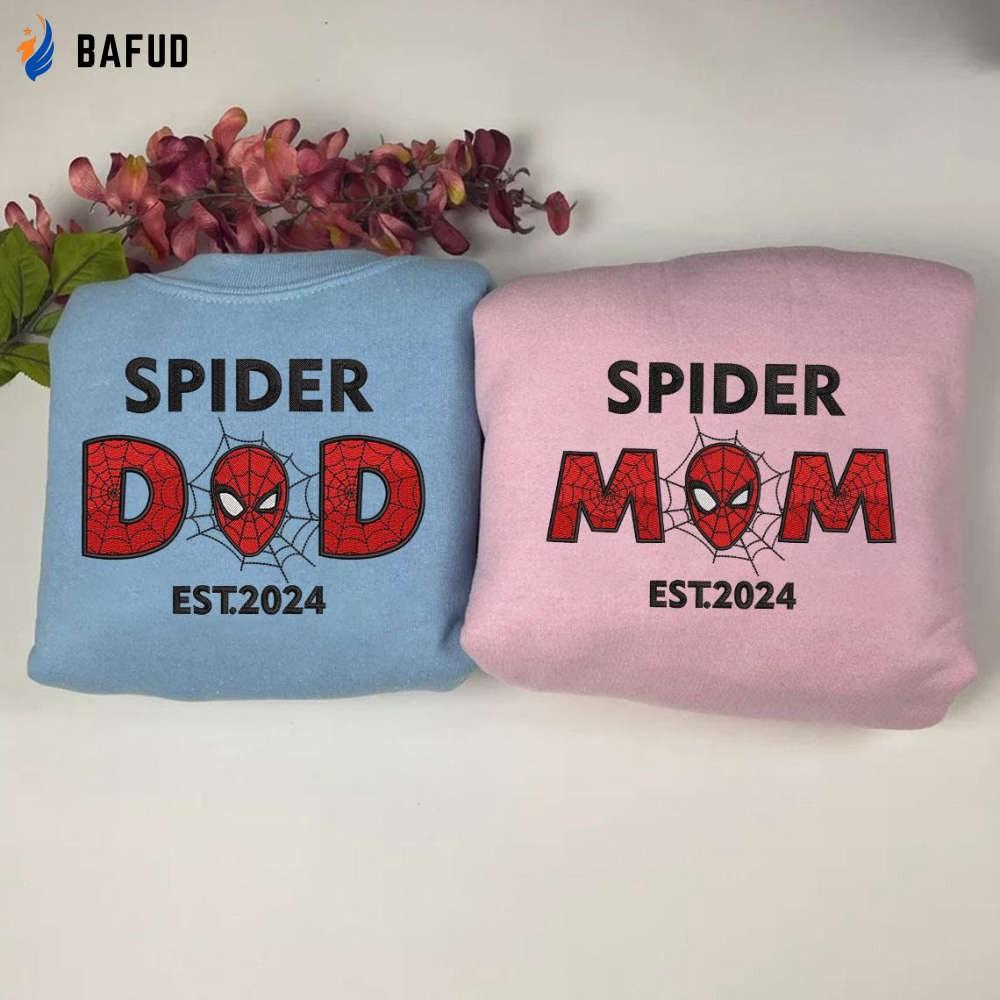 Embroidered Shirt, Cartoon Sweatshirt, the perfect gift for Mother's Day! With our Spiderman Couple ESH245-246.C design, you'll both feel like superheroes. Made from high-quality materials, this shirt offers comfort and durability. The custom EST embroidery adds a personal touch. Whether worn separately or as a matching set, this shirt will make heads turn. Show off your love for Spiderman and each other with this unique and stylish sweatshirt. Surprise your partner with a gift that symbolizes your strong bond and shared interests. Don't miss out on this opportunity to celebrate your love and make memories that will last a lifetime. Order now and let the superhero in you shine!