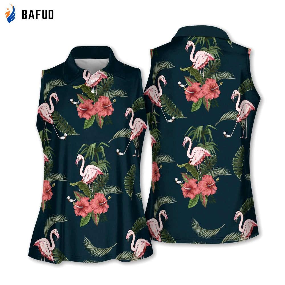 Our vibrant tropical flamingo print adds a touch of fun and personality to your golfing attire, making you stand out on the green. The sleeveless design keeps you cool under the sun, enabling you to focus on your game without worrying about overheating.