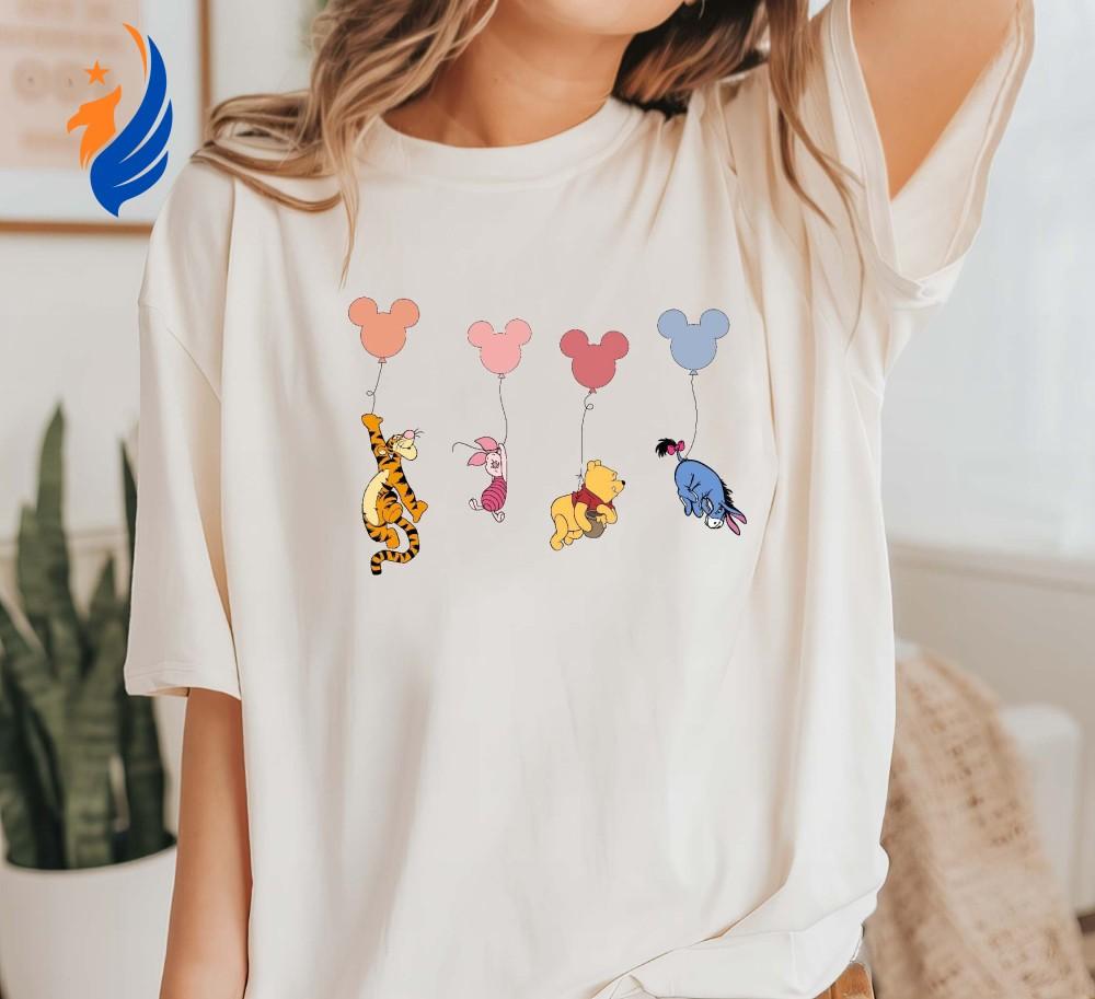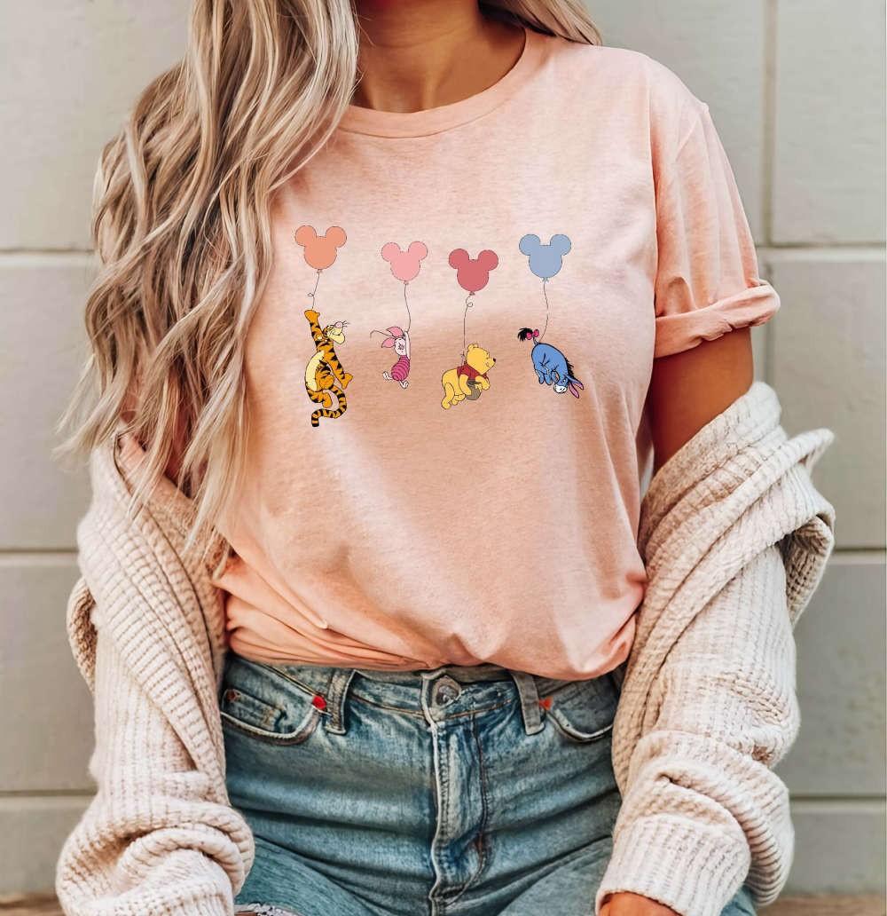 Cute Winnie The Pooh Shirt - Comfort Colors® Friends Tee with Balloons - Disney T-Shirt