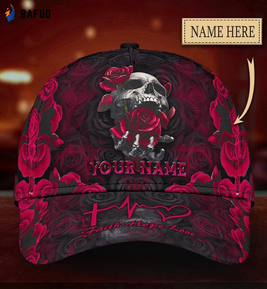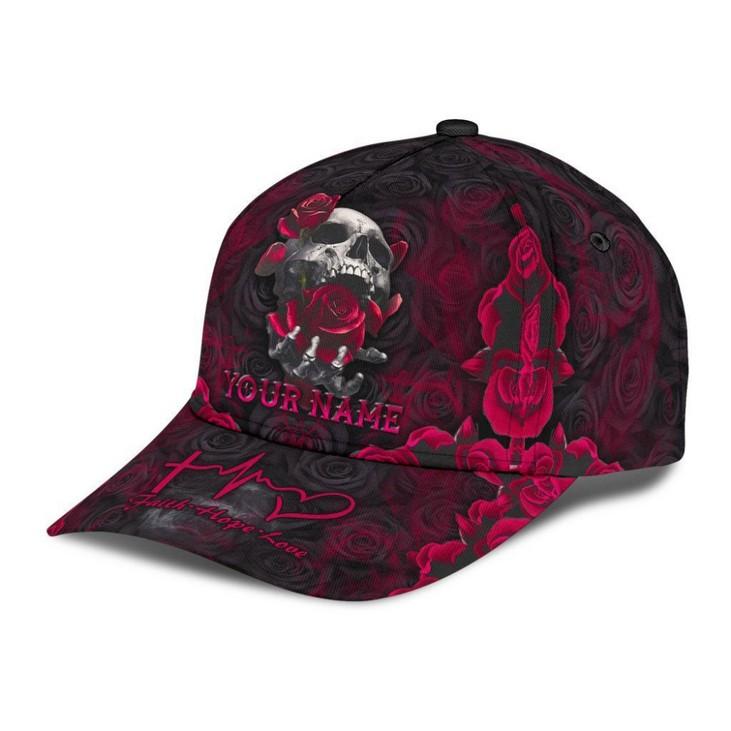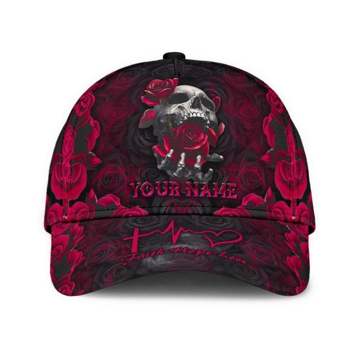 Personalized Skull With Roses Faith Hope Love Classic Cap
