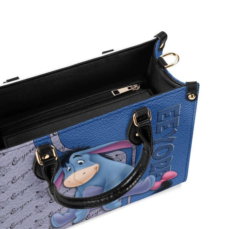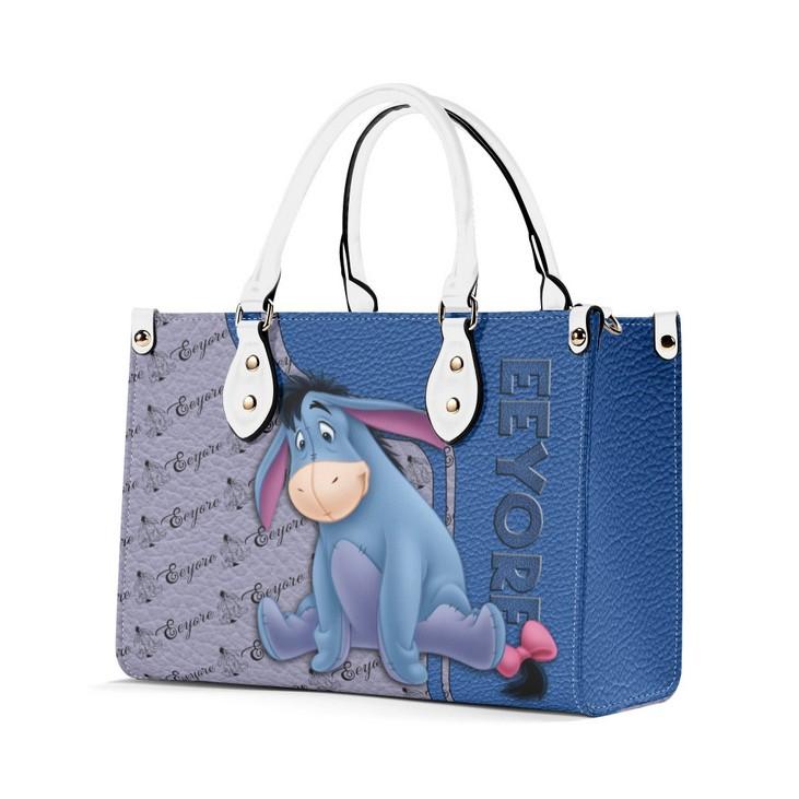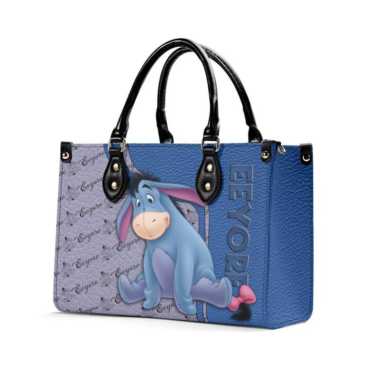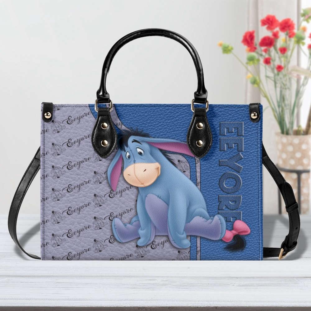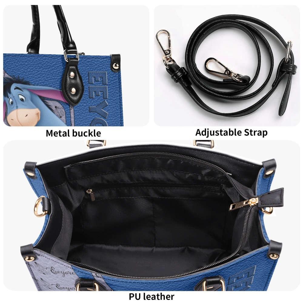 Introducing the Lovely Winnie The Pooh Eeyore Leather Handbag, a must-have for Eeyore lovers! This custom leather bag is not only stylish but also practical, making it the perfect accessory for any woman. Handmade with attention to detail, this handbag showcases Eeyore's adorable face, capturing the essence of this beloved character. With a spacious interior and multiple pockets, it offers plenty of room for all your essentials. The high-quality leather ensures durability, while the adjustable strap allows for comfortable carrying. Whether you're running errands or heading out for a night on the town, this Eeyore Women Bag Purse will elevate your style and showcase your love for this iconic character. Don't miss out on this unique and charming handbag that is sure to turn heads wherever you go. Get yours today and add a touch of whimsy to your wardrobe! Due to the different monitor and light effects, the actual color of the item might be slightly different from the visual pictures. The leather bag. This item is a must-have for any woman, suitable from workday to the weekend outing. It is roomy and comfortable to carry, thanks to its shoulder straps and rolled leather top handles. Fashioned from supple-grained leather printed on both sides, creating a stylish contrast in color.