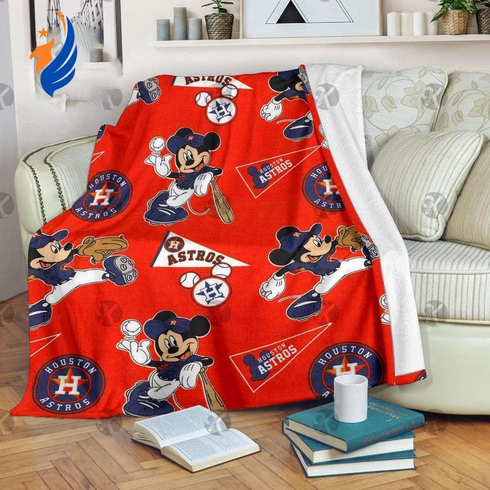 Mickey Mouse Plays Houston Astros MLB Team Baseball In Red Fleece Blanket - Blanket Home Decor Gift BUY IT HERE
