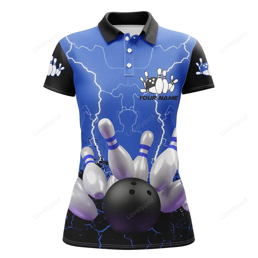Blue Lightning Women Bowling Sleeveless Polo Shirts, Personalized Team Bowling Female Bowling Uniform