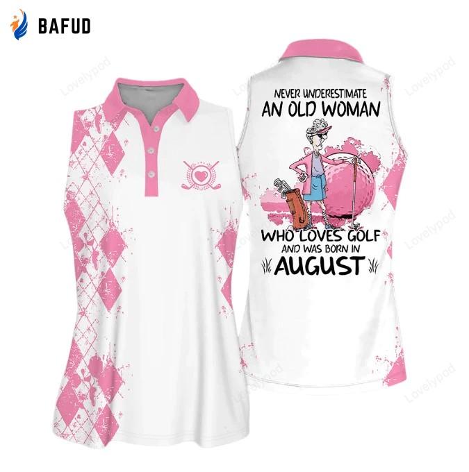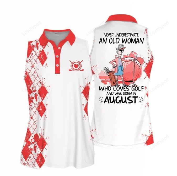 Sleeveless Women Polo Shirt For Ladies, Never underestimate an old woman who loves golf and was born in August, Golf Shirt