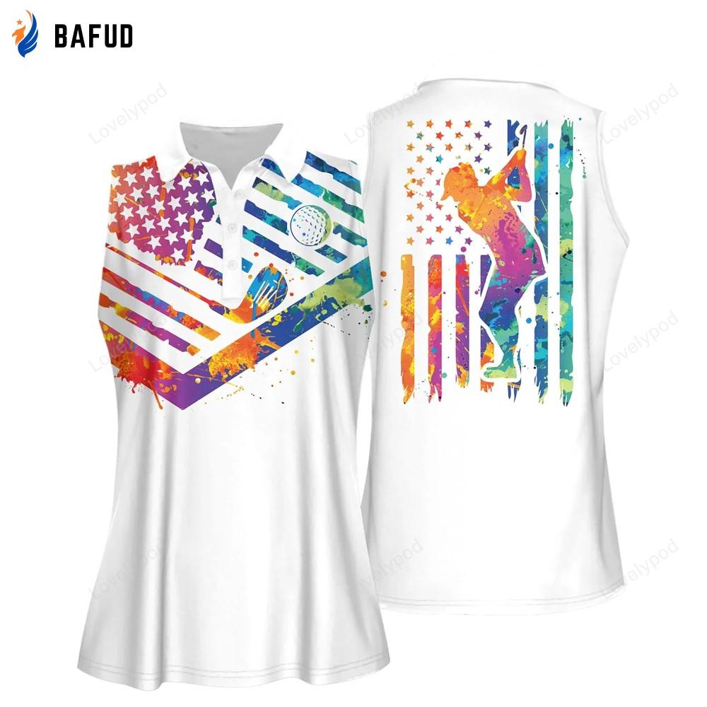 Watercolor America Flag With Silhouette Women Short Sleeve Polo Shirt, Sleeveless Golf Polo Shirt, Women’s Jersey Polo Shirt BUY IT