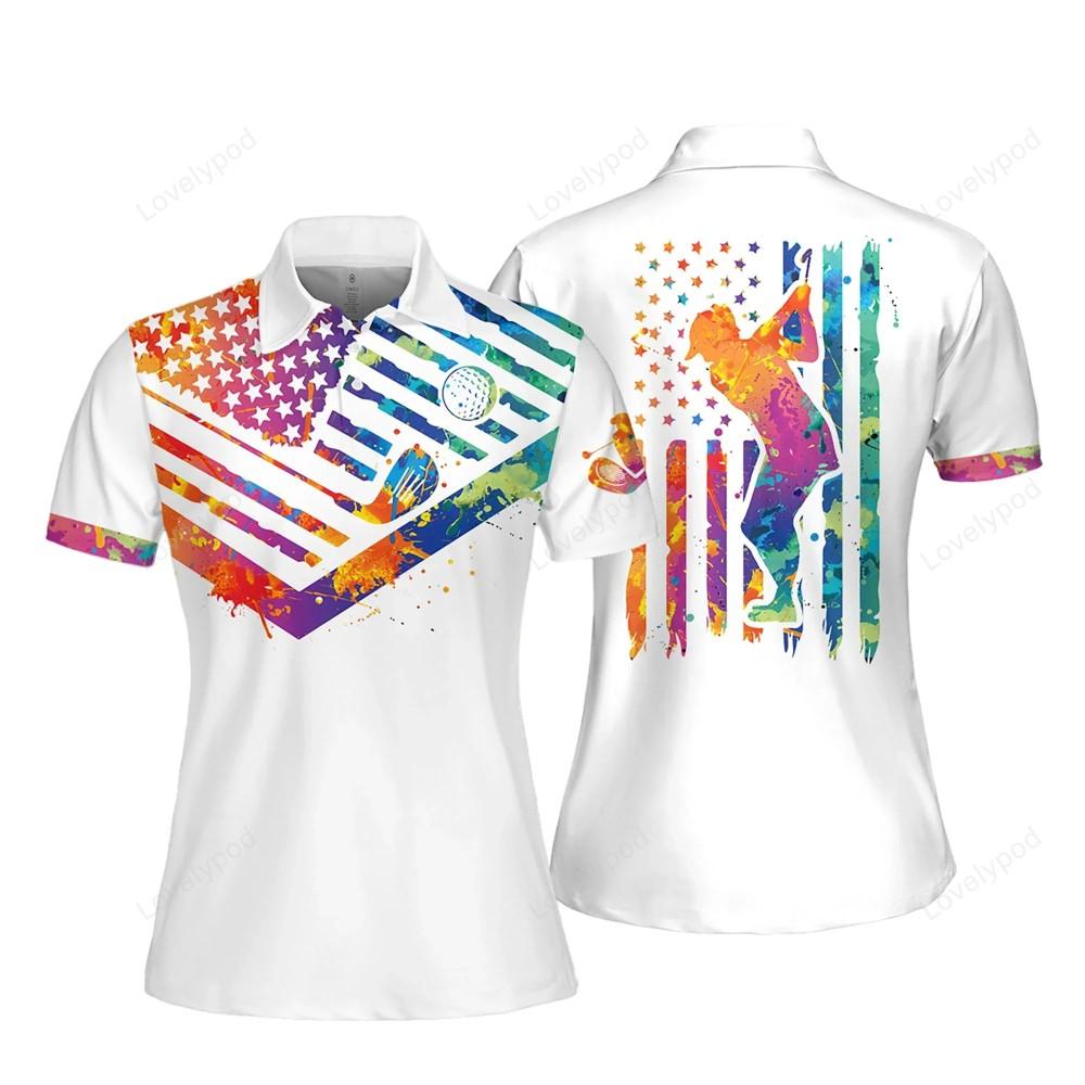 Each shirt features a beautiful watercolor design of the American flag with a silhouette of a woman, representing strength, independence, and freedom. Made from high-quality materials, these polo shirts are soft, breathable, and perfect for both casual and active wear.