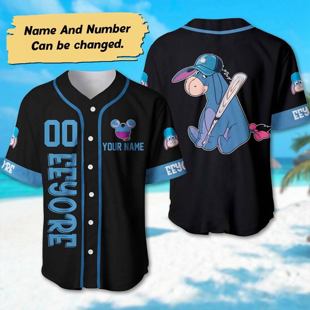 Introducing our Personalized Eeyore Baseball Jersey, the perfect choice for any Eeyore fan! Made from high-quality materials, this jersey showcases a custom design with Eeyore's adorable face. With its comfortable fit and durable construction, it's ideal for sports or casual wear. Whether you're a kid or an adult, this Winnie The Pooh Birthday Gift will surely bring joy and excitement. And if you're looking for something more unique, our Eeyore 3D Printed Shirt will amaze you with its intricate details. Get ready to stand out from the crowd and show off your love for Eeyore with these custom-made jerseys and shirts. Don't miss out on this opportunity to own a one-of-a-kind piece that captures the essence of everyone's favorite gloomy donkey. Order now and experience the magical world of Eeyore like never before!