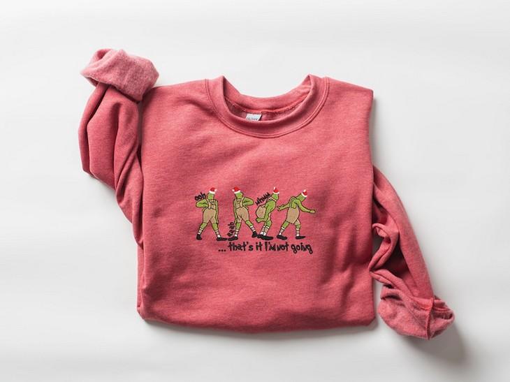 Introducing our "That’s It I’m Not Going" Christmas Embroidered Crewneck T-Shirt/Sweatshirt! This festive shirt is perfect for men and women who want to add a touch of humor to their holiday wardrobe.