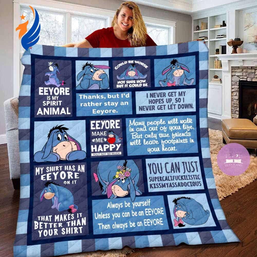 Introducing the Disney Eeyore Winnie The Pooh Fleece Quilt Blanket - a cozy essential for all Disney fans! This beautifully crafted blanket features adorable Eeyore and Winnie The Pooh designs, bringing the magic of Hundred Acre Wood into your home. Made from premium quality fleece, it offers unparalleled softness and warmth, perfect for snuggling up during chilly evenings or movie nights. Its generous size provides ample coverage, ensuring comfort for both kids and adults. With its vibrant colors and intricate detailing, this blanket doubles as a charming decorative piece, adding a touch of Disney whimsy to any room. Its lightweight and durable construction guarantees long-lasting use, making it an excellent investment. Whether you're a lifelong Disney enthusiast or looking for a delightful gift, this Eeyore Winnie The Pooh Fleece Quilt Blanket is a must-have addition to your collection. Experience the joy of Disney magic while keeping cozy – order yours today!