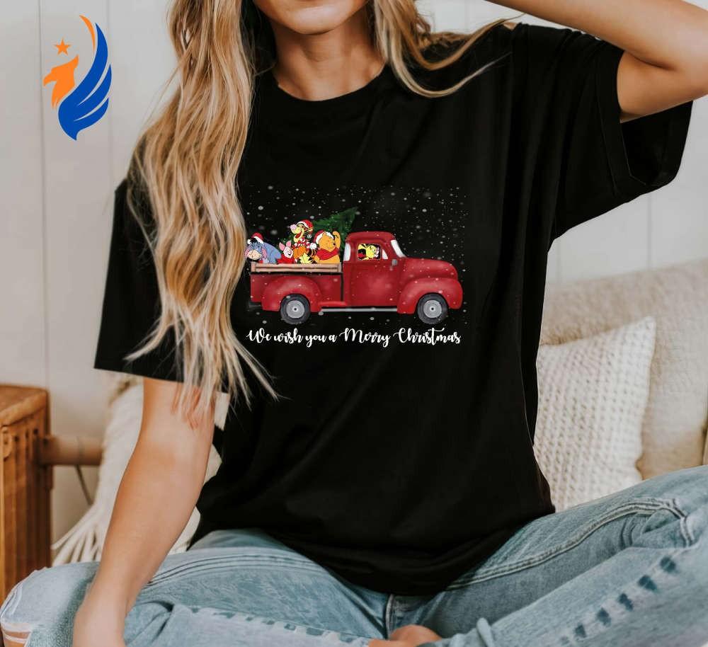 Introducing our delightful collection of Christmas shirts! Get into the festive spirit with our Winnie The Pooh Christmas Shirt, featuring everyone's favorite bear in a Santa hat. Made with soft, premium quality fabric, this shirt offers ultimate comfort and durability. Its vibrant colors and charming design will surely bring joy to your holiday season.