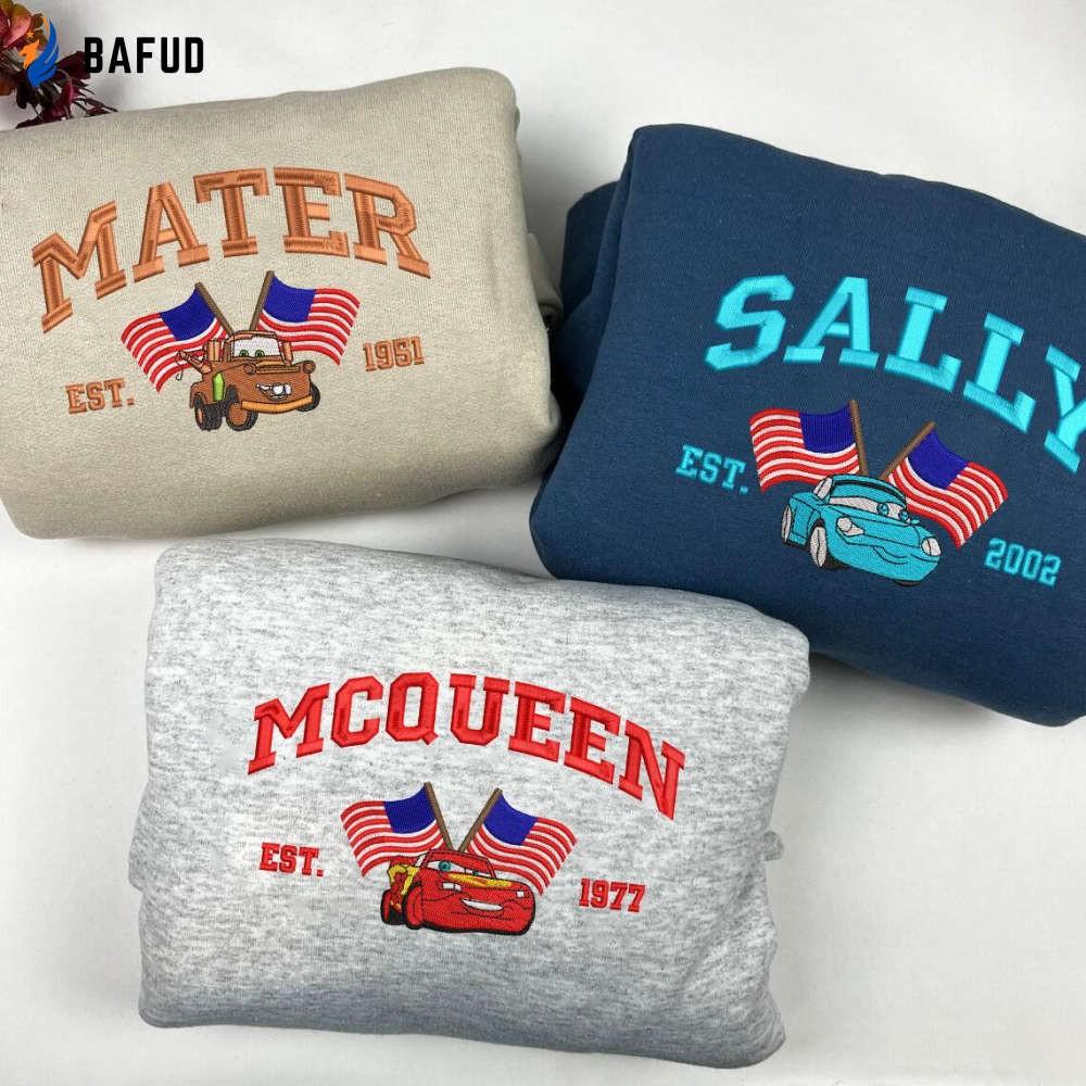 Get ready to show off your love for the Cars movie on the Fourth of July with our Mcqueen Sally Mater Happy 4th Of July
