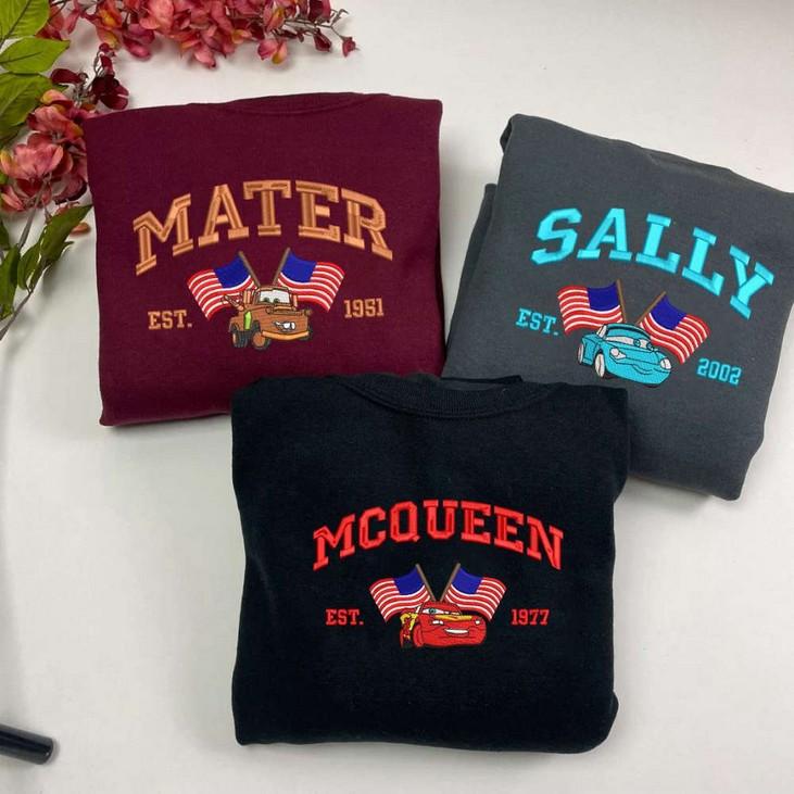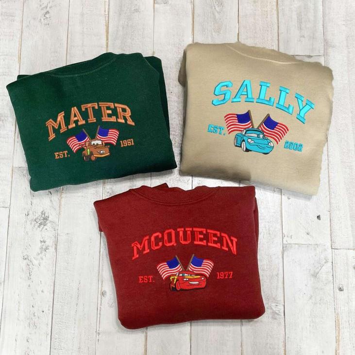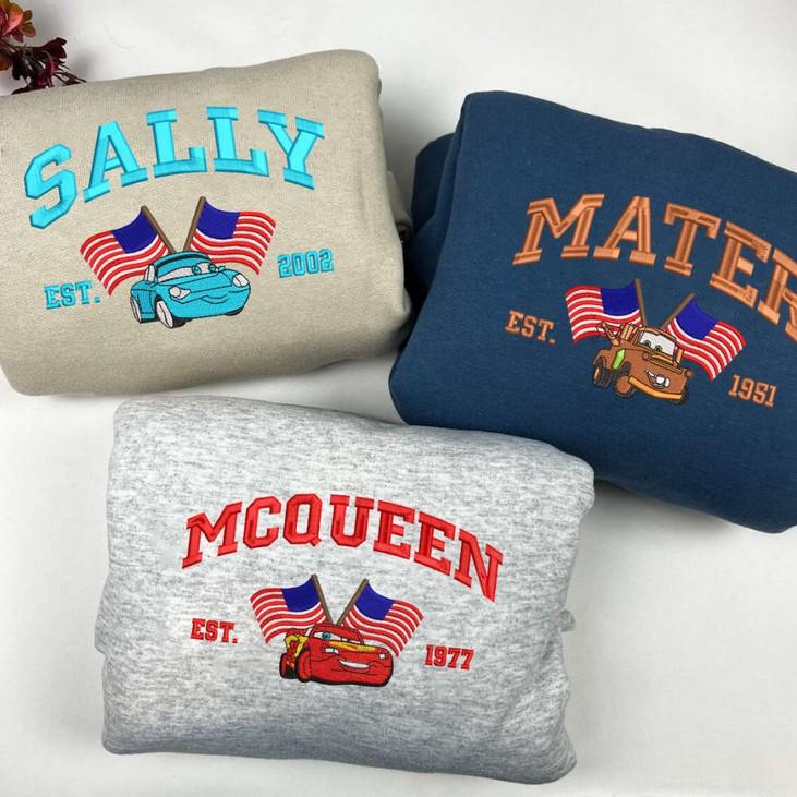 Embroidered Sweatshirt! This USA-themed sweatshirt features vibrant cartoon embroidery of the iconic characters Mcqueen, Sally, and Mater. Made with high-quality materials, this sweatshirt is not only comfortable but also durable, ensuring long-lasting wear. The eye-catching design and attention to detail make it a perfect gift for fans of the Cars movie. Whether you're celebrating Independence Day or simply want to showcase your love for the film, this sweatshirt is the ideal choice. Stand out from the crowd and enjoy the compliments as you showcase your unique style. Order your ESH468-470 sweatshirt today and experience the value of combining comfort, durability, and your favorite animated characters in one stylish garment.