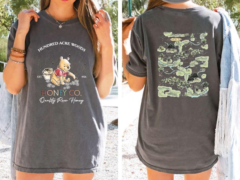 Introducing our Vintage Winnie the Pooh Honey Co shirt, a delightful piece that will transport you to the enchanting Hundred Acre Wood. Made from premium quality fabric, this shirt showcases an intricately designed map of the beloved woodland. With its vibrant colors and nostalgic feel, it's the perfect addition to your Pooh bear collection. Whether you're planning a trip to Disney World or Disneyland, our Pooh bear Disney World Disneyland trip tee is a must-have. Its soft and breathable material ensures maximum comfort during your adventures, while the adorable Pooh bear print adds a touch of magic to your outfit. And let's not forget our Family matching shirts, the ultimate way to celebrate togetherness. Crafted with love, these shirts create a sense of unity and harmony among your loved ones. They are not only stylish but also a great way to capture beautiful family memories. With our vintage Pooh bear shirts, you get exceptional quality, timeless designs, and a touch of nostalgia, all at an irresistible value. So, embrace the charm of Winnie the Pooh and embark on a journey through childhood with our enchanting collection.