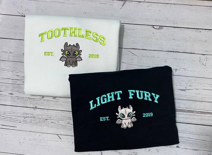 Toothless & Light Fury Sweatshirt: Dragon Couple Shirt Valentine s Day How to Train Your DragonEmbroidered & Light 130 characters