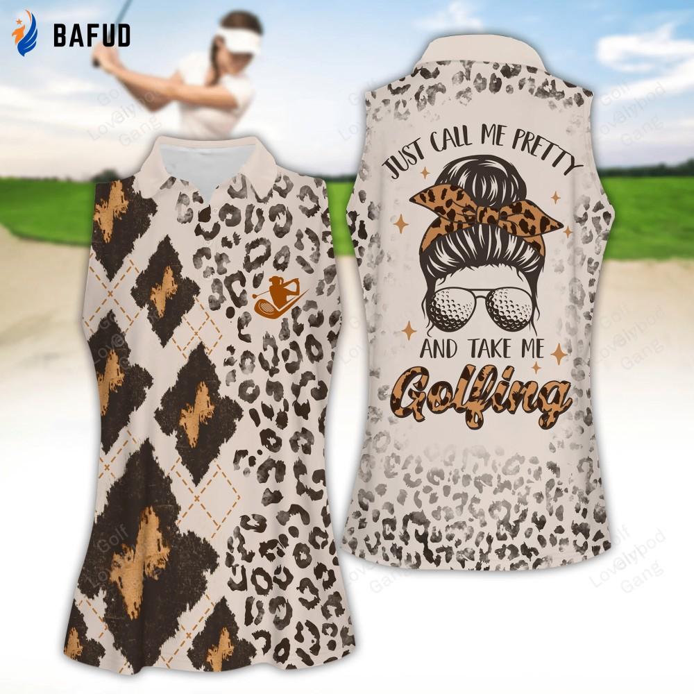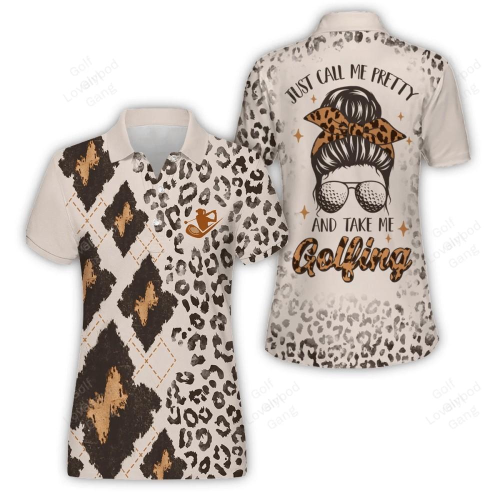 Introducing our Just Call Me Pretty Leopard Argyle Women Golf Apparels - the perfect blend of style and performance for the modern female golfer. Stand out on the course with our funny golf shirt, designed to add a touch of humor to your game. With its eye-catching leopard argyle pattern, this golf polo shirt will make you the envy of your fellow golfers.