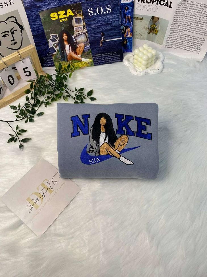 Introducing the Nike x SZA Embroidered Crewneck T-Shirt. Designed for both men and women, this sweatshirt is the epitome of style and comfort. With its intricate embroidery and attention to detail, this shirt is a true work of art. Made from high-quality materials, it offers a soft and cozy feel against the skin. The crewneck design ensures a timeless look that can be worn for any occasion. Whether you're hitting the gym or simply lounging at home, this shirt will keep you looking effortlessly cool. Stand out from the crowd with the Nike x SZA Embroidered Crewneck T-Shirt.