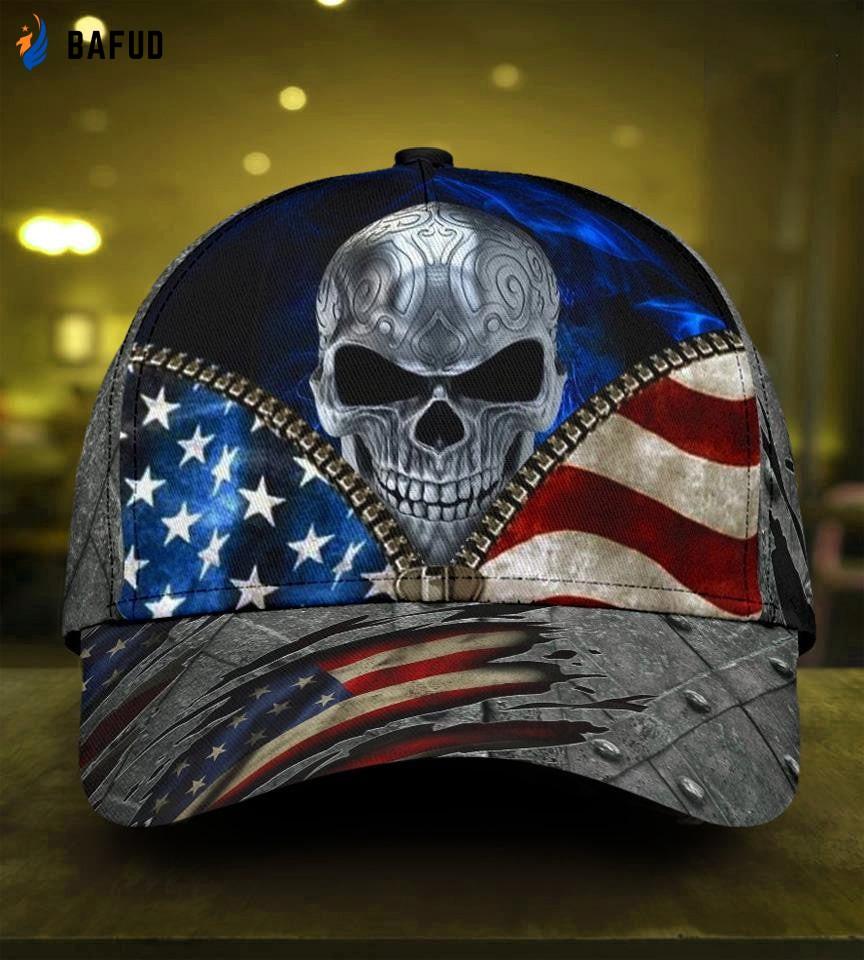 With its classic design, this cap features a bold skull graphic adorned with the stars and stripes of the American flag. Made from high-quality materials, it ensures durability and long-lasting wear. The adjustable strap allows for a customized fit, ensuring comfort all day long.