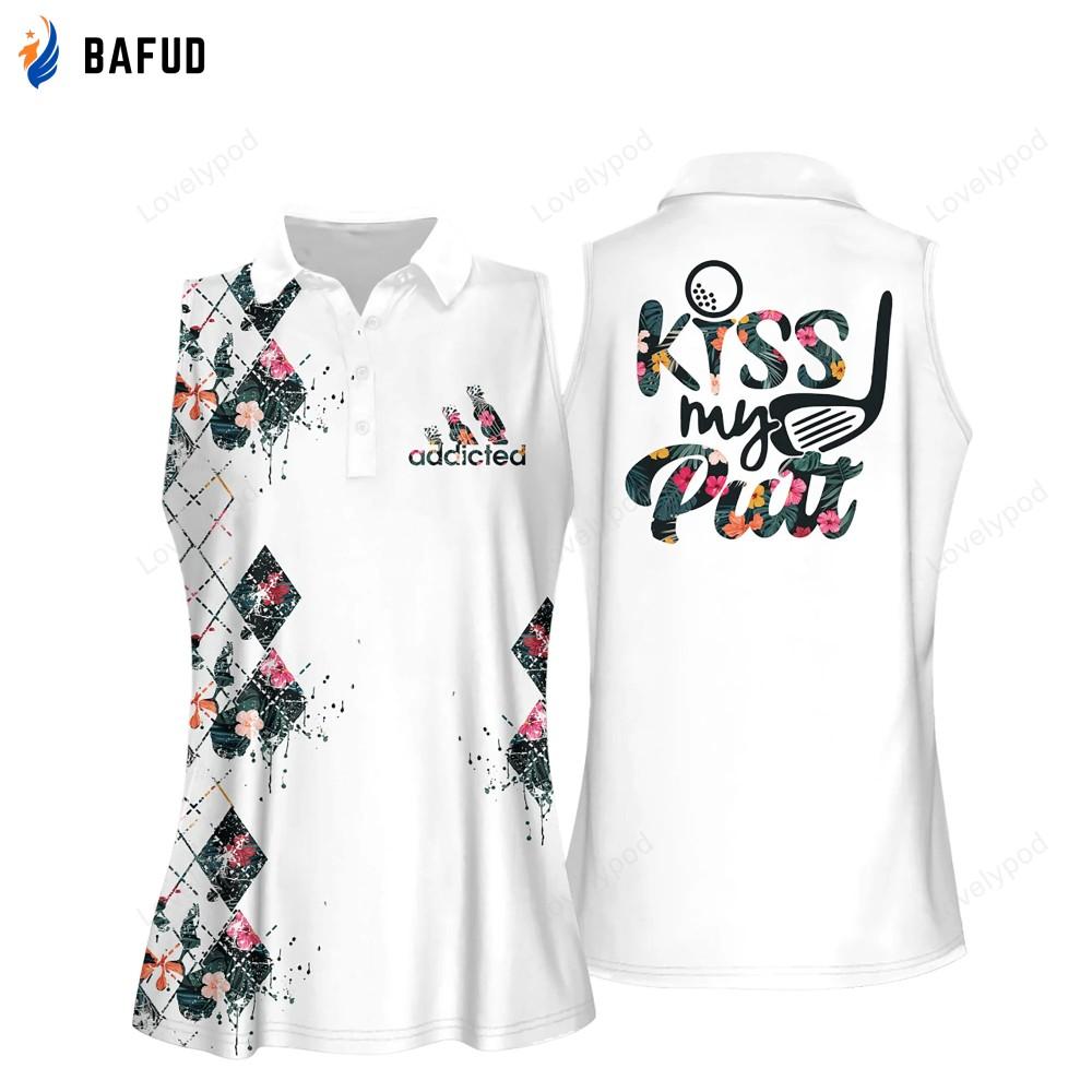 Choose the Tropical Flower Argyle Style Kiss My Putt Women Short Sleeve Polo Shirt, Sleeveless Golf Polo Shirt and let your golfing fashion make a statement!